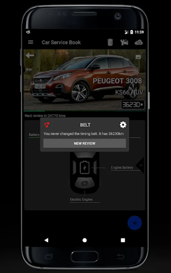 Ex: You changed your timing belt 115 to 000kms, it must be replaced every 120 000kms (see manufacturer's data). When your vehicle has 230 000kms, the application will begin to warn you.