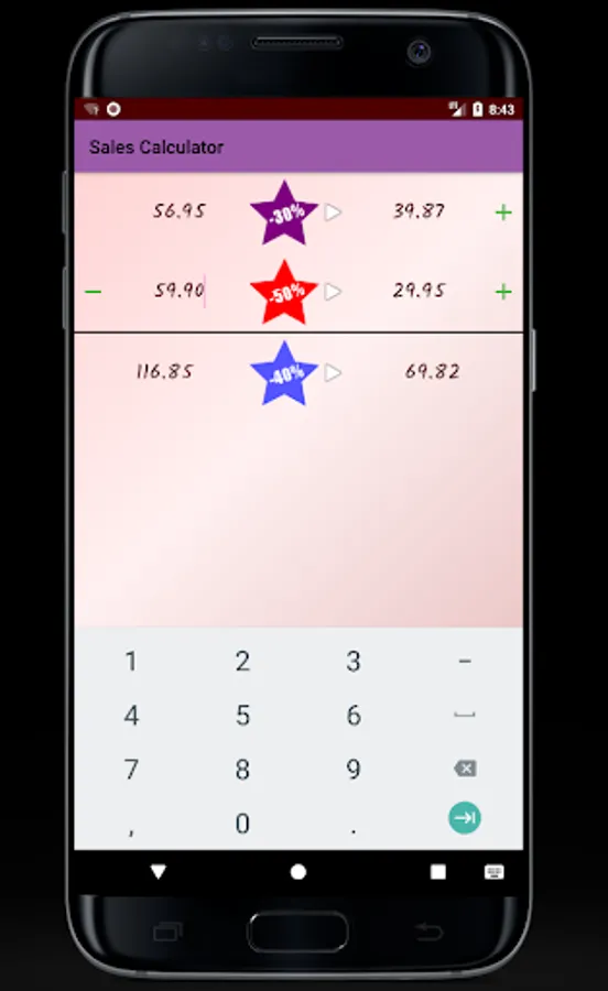 SFC - Sales Fast and Easy Calculator is made for you. Simply enter prices before promotion, and the application will compute by itself the sale price.