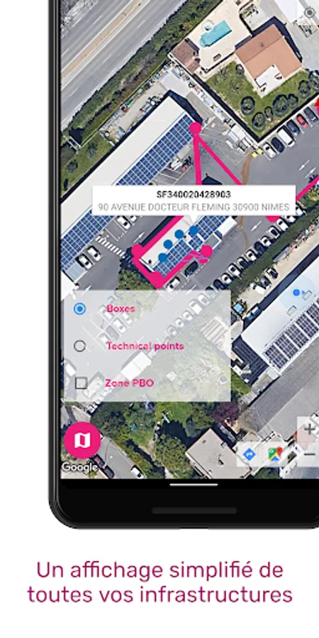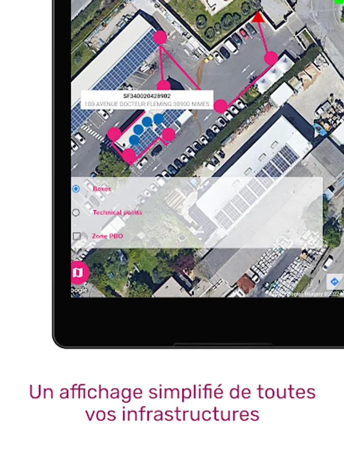 • Display all the infrastructures related to the deployment of optical fiber around you on a map