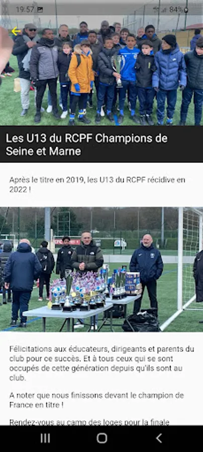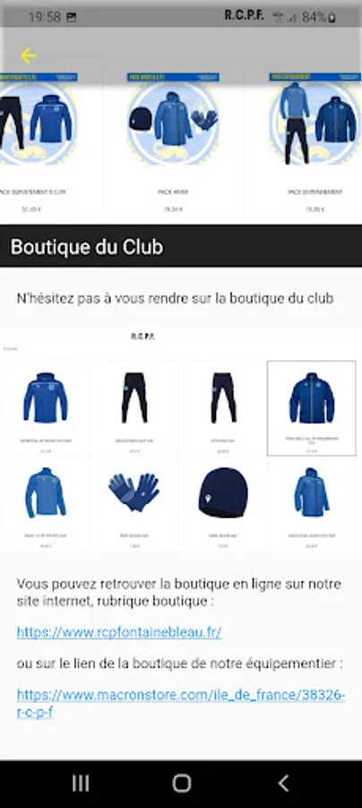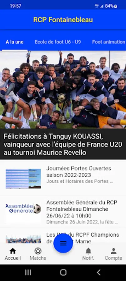 FC WEB application of the RCP Fontainebleau football club: monitoring the latest club news and receiving notifications sent from the members area of the website www.rcpfontainebleau.fr