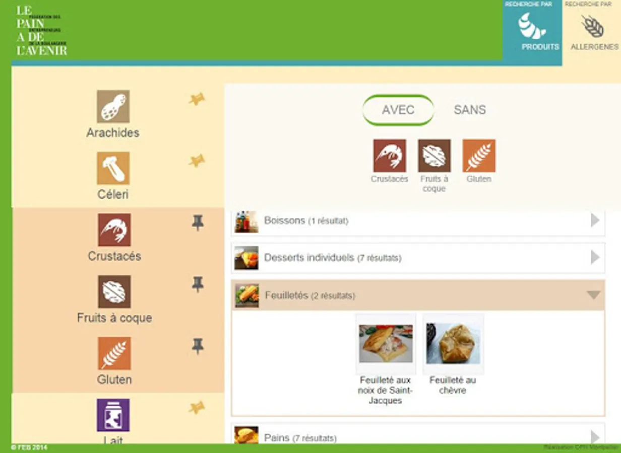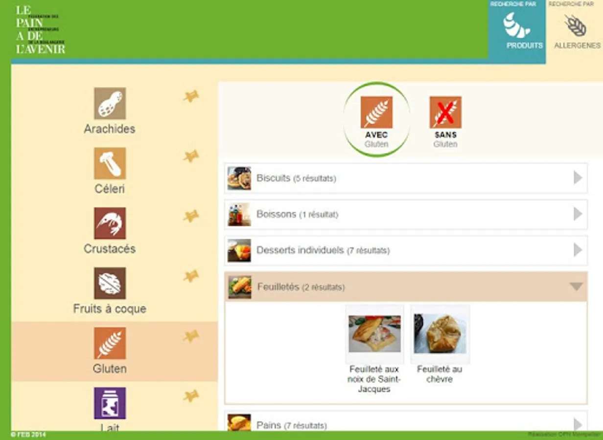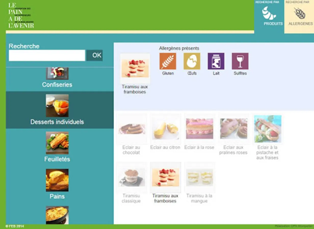 Application developed by the FEB (Federation of Enterprises in Bakery) and complies with INCO (EU Regulation on the labeling of unpackaged applicable in December 2014 products) requirements.
