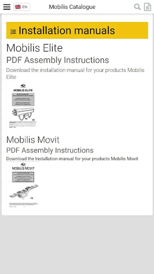 The Mobilis App allows a 1-clic and offline catalogue consultation of the Mobilis Elite and Movit products with their presentation.