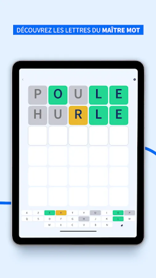 Discover the hidden words in 6 tries in this word game. A color code tells you when a letter is part of the word, and if this last letter is well placed.