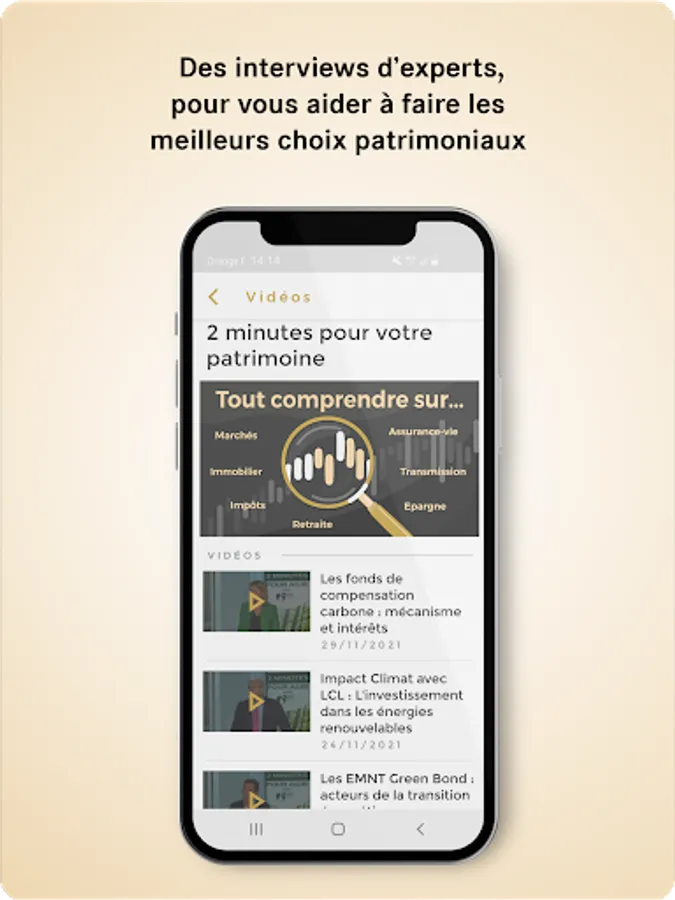 You can also find our dynamic formats: expert videos deciphering a topical subject and thus facilitating your asset decisions, as well as a podcast, in particular dedicated to the evolution of the financial markets and recorded by the portfolio management teams of LCL Banque Private.