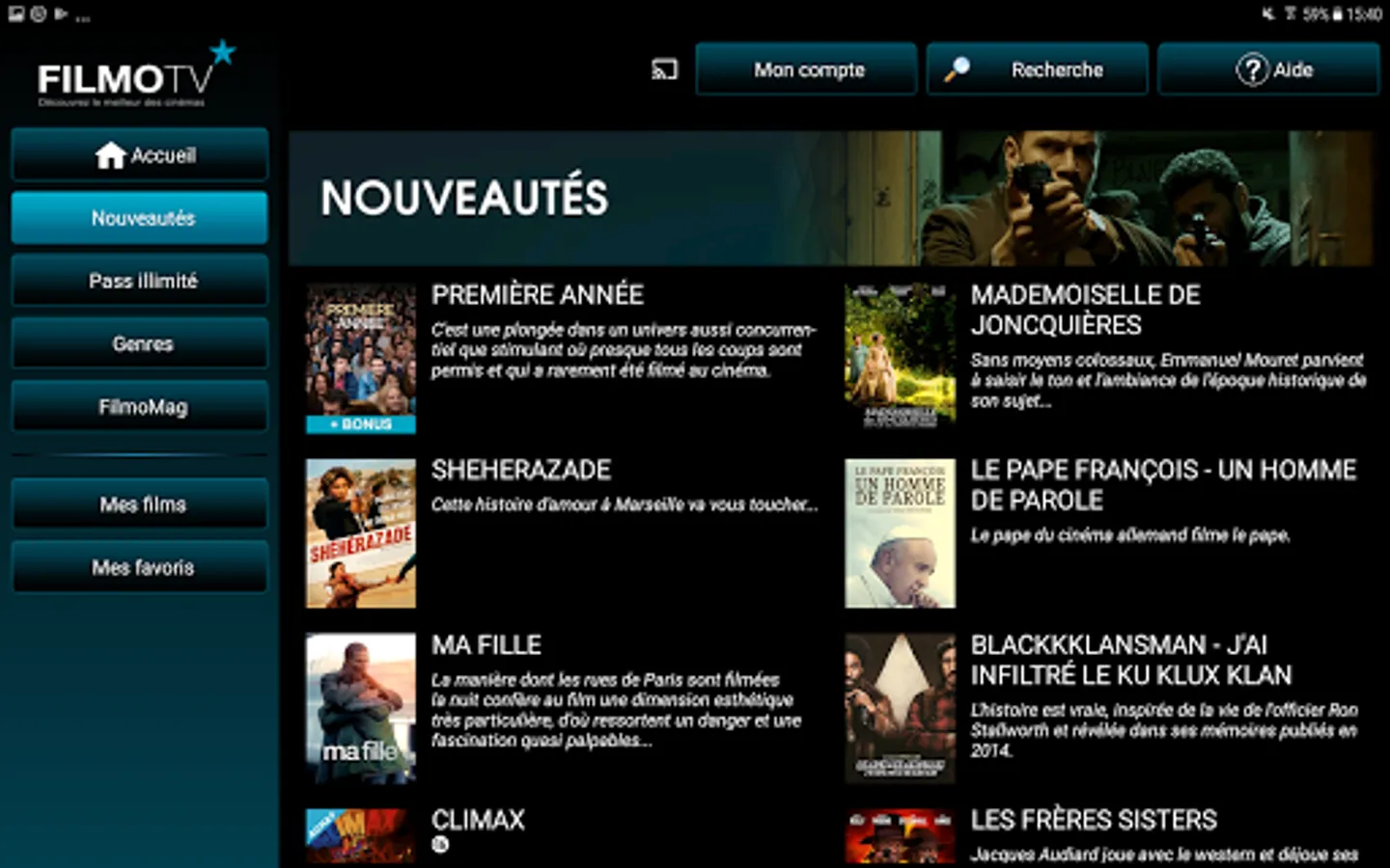 First and only platform of SVOD and VOD 100% cinema, FilmoTV offers an Unlimited Pass sweeping the cinema of the whole world; each film is presented by a specialist and the programming is enriched with interviews and testimonials. Thanks to FilmoMag, there are several thousand film presentations and hundreds of unpublished interviews of directors and testimonials available to the audience ... A multitude of eclectic film moments meeting the expectations of young and old, great amateurs like neophytes.