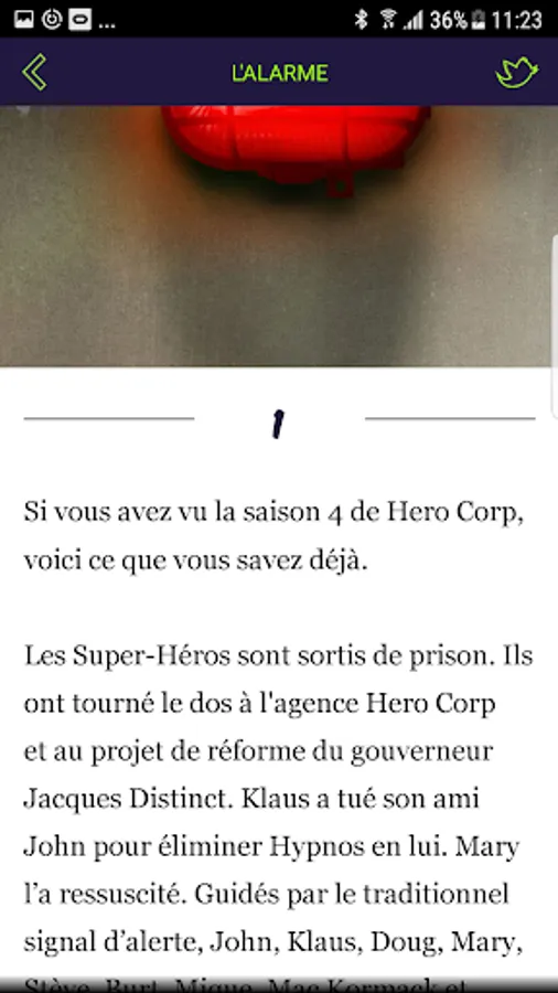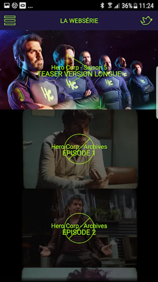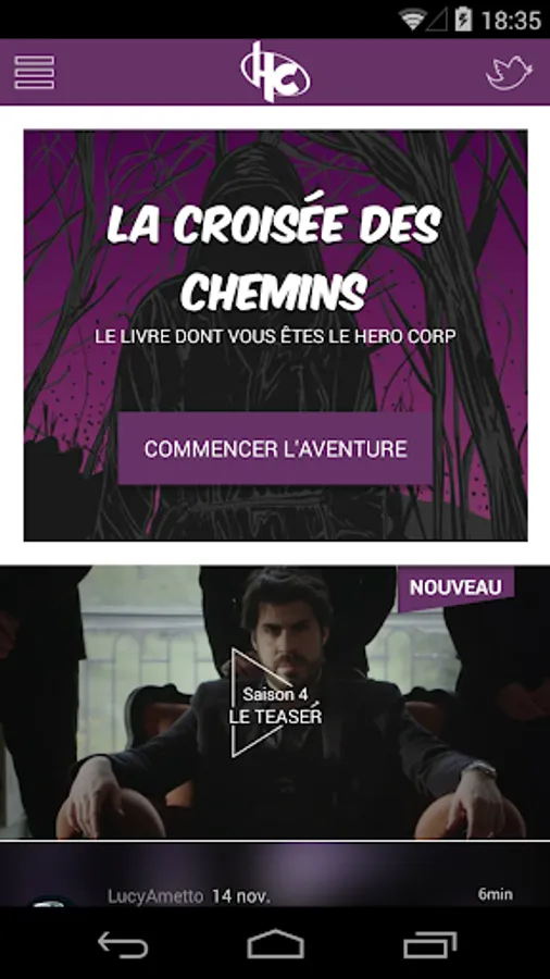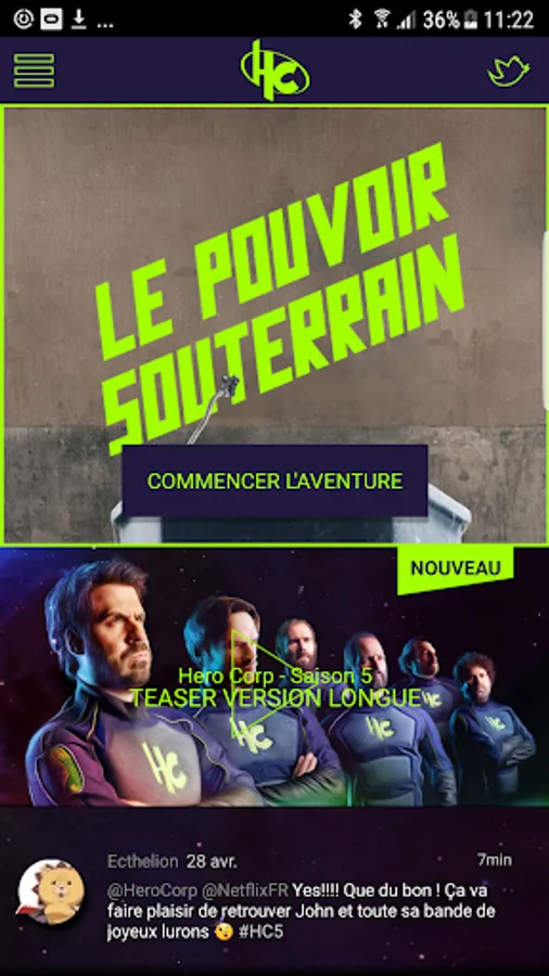 The application starts with the colors of the final season of the series Hero Corp, broadcast on France 4.