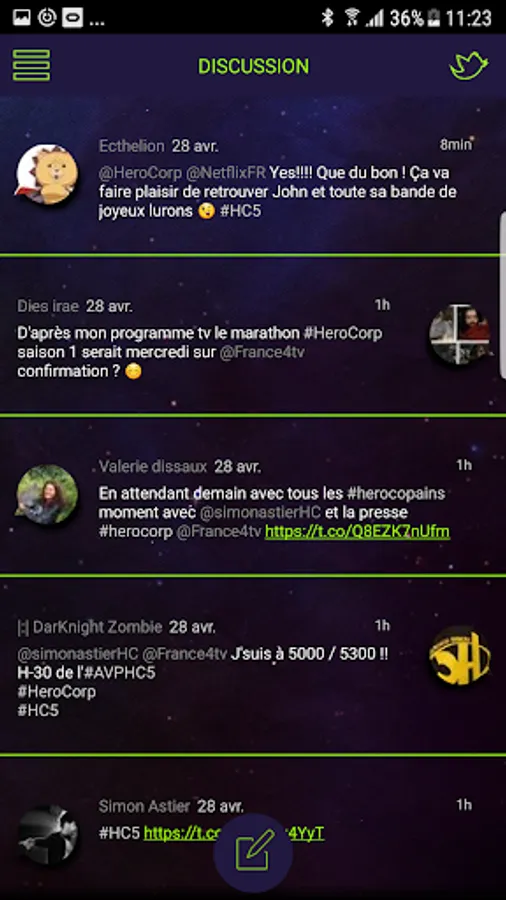 Live tweets with the hashtag #herocorp