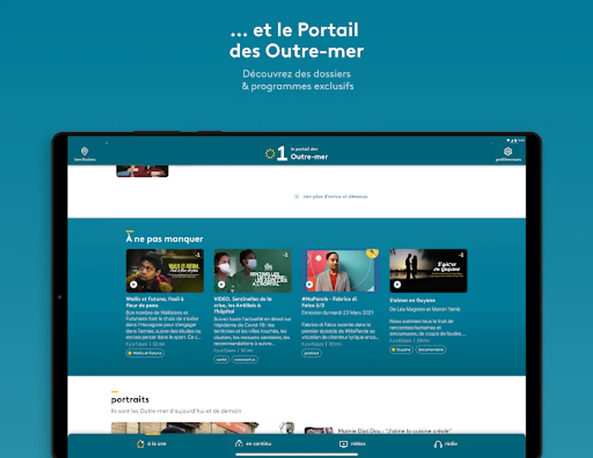 Released in 2020, the new Overseas Portal offer keeps you informed of the essentials of ultramarine news and gives you access to thematic files and exclusive programs (documentary portraits, series, shows, etc. .) on the Overseas.