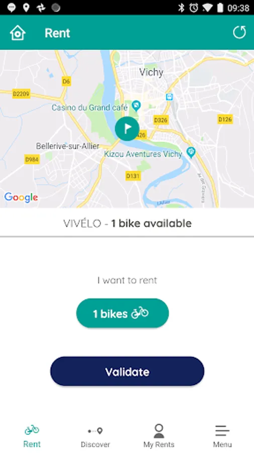 Vivélo Vichy Community is a free app that allows you to rent a bike 24/7 in Vichy : Vichy train station, Wilson street (at the corner of President Roosevelt street), Place de la Poste de Vichy, Pole University and, Cusset Intermodal Exchange Center (Boulevard General de Gaulle).