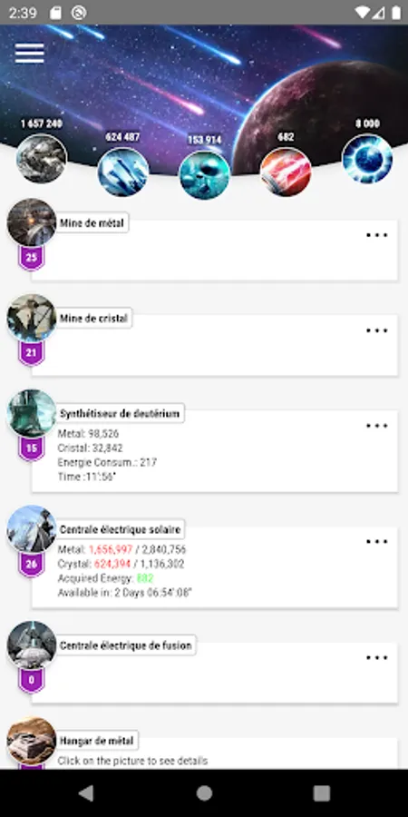 When using the application, note that Ogame is a complete and complex game, it is difficult for me to have access to all the options that the game offers.