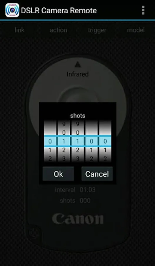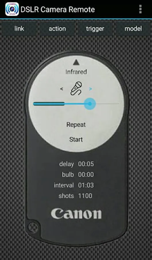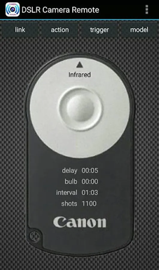 - infrared control of Canon, Nikon, Sony, Pentax, Olympus, Minolta and Fuji camera (if your phone has an IR blaster and with Lollipop or above Android version)