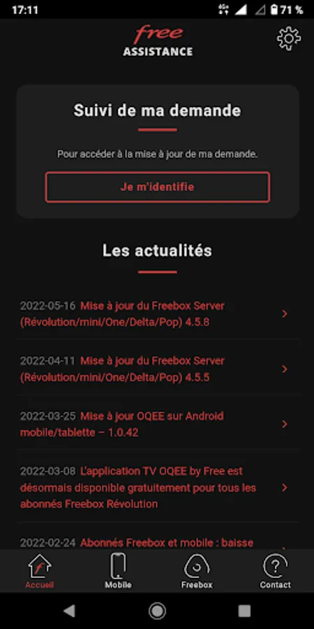 Easily access Freebox assistance and mobile offers assistance from the Free Assistance application.