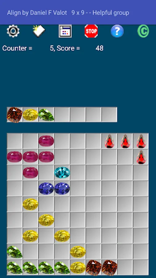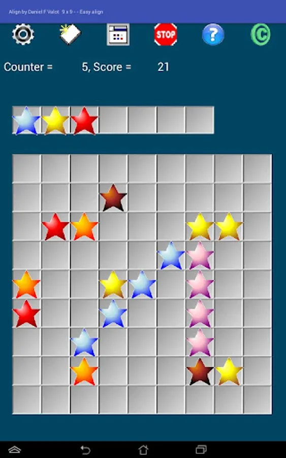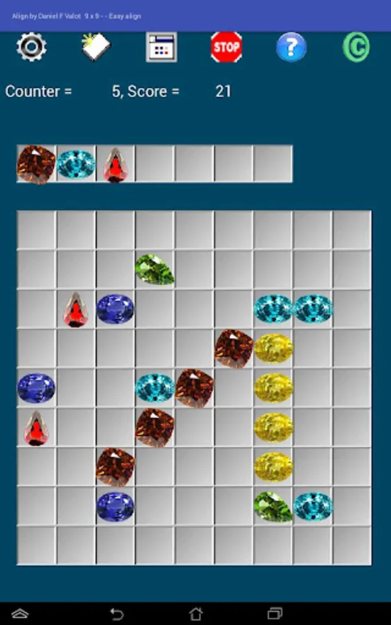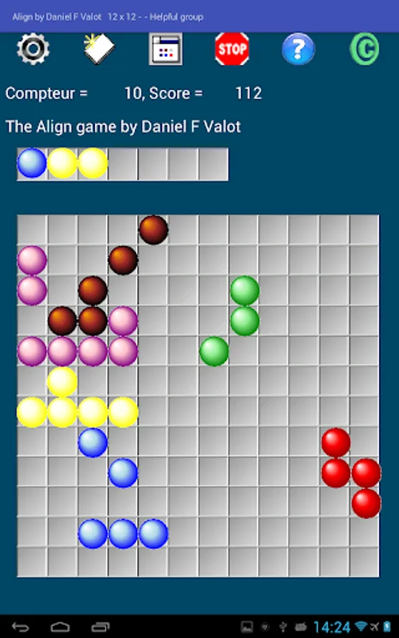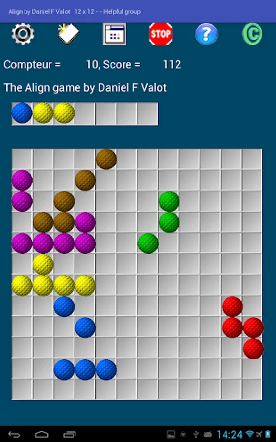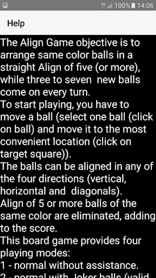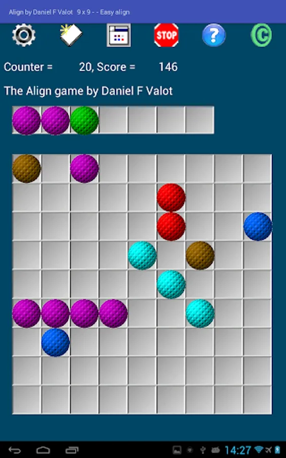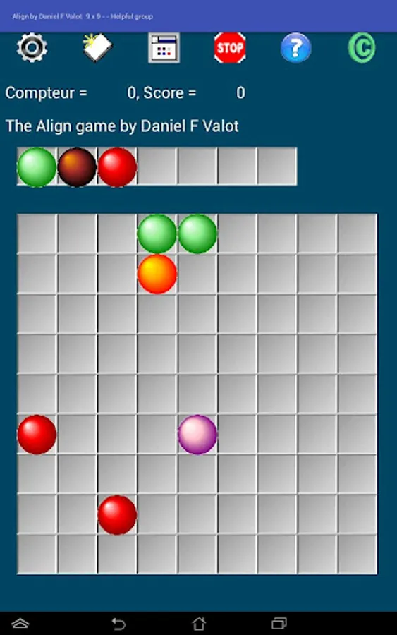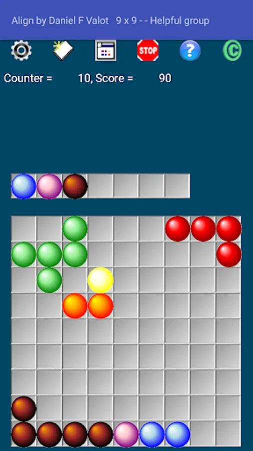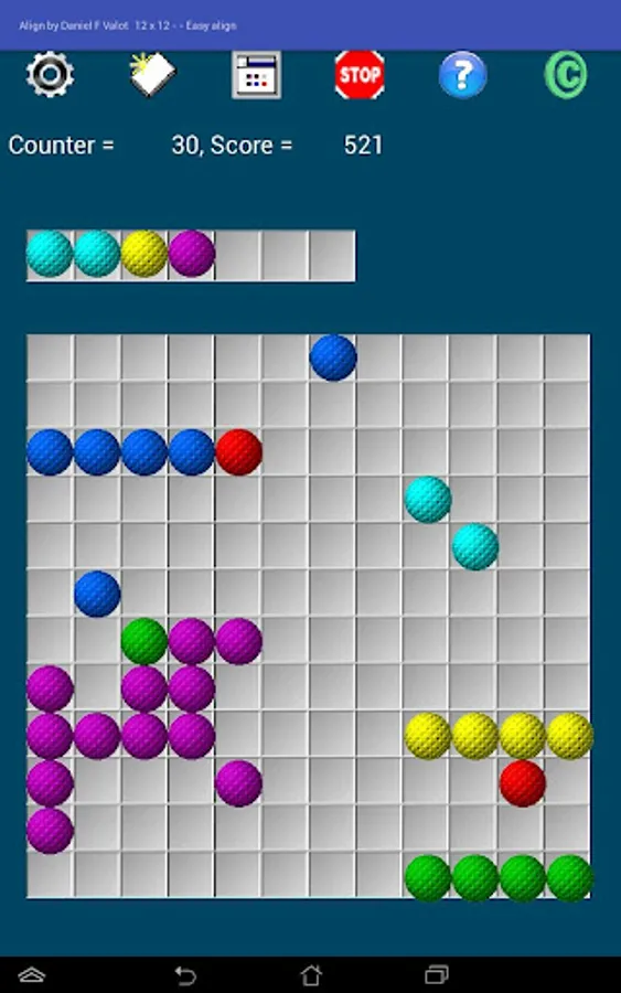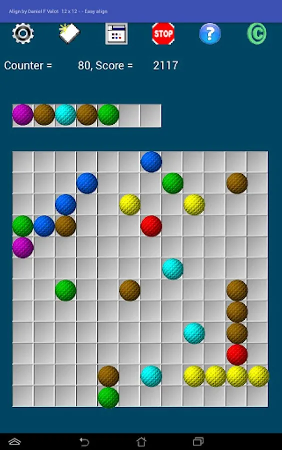 The Align Game objective is to arrange same color balls in a straight line of five (or more), while three to seven new balls come on every turn.