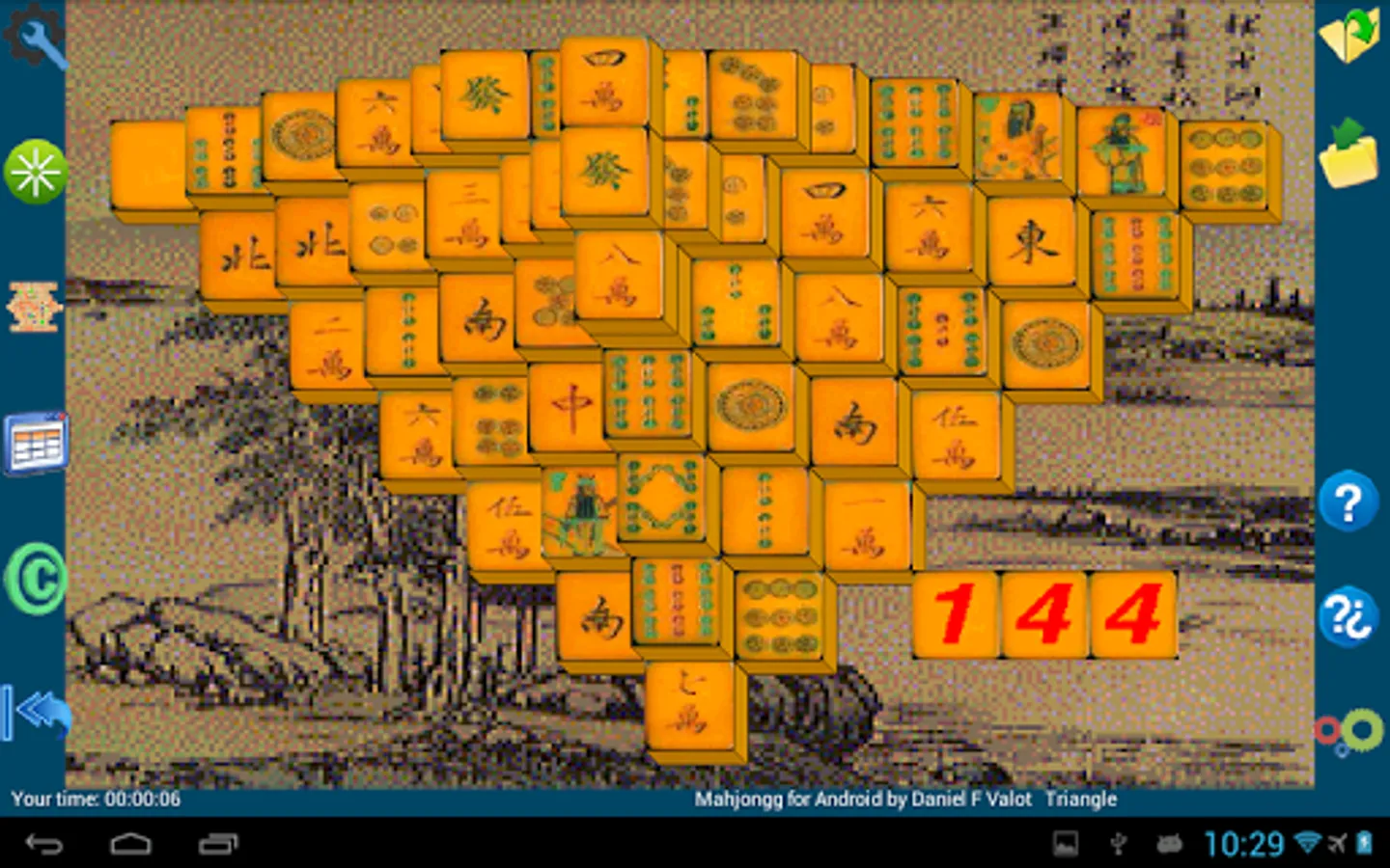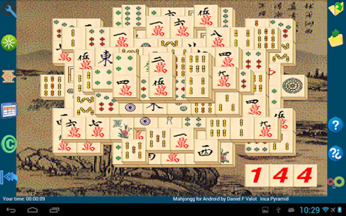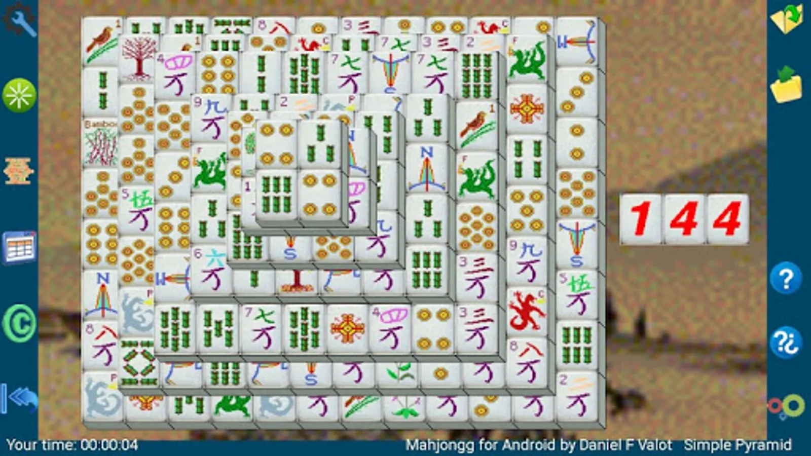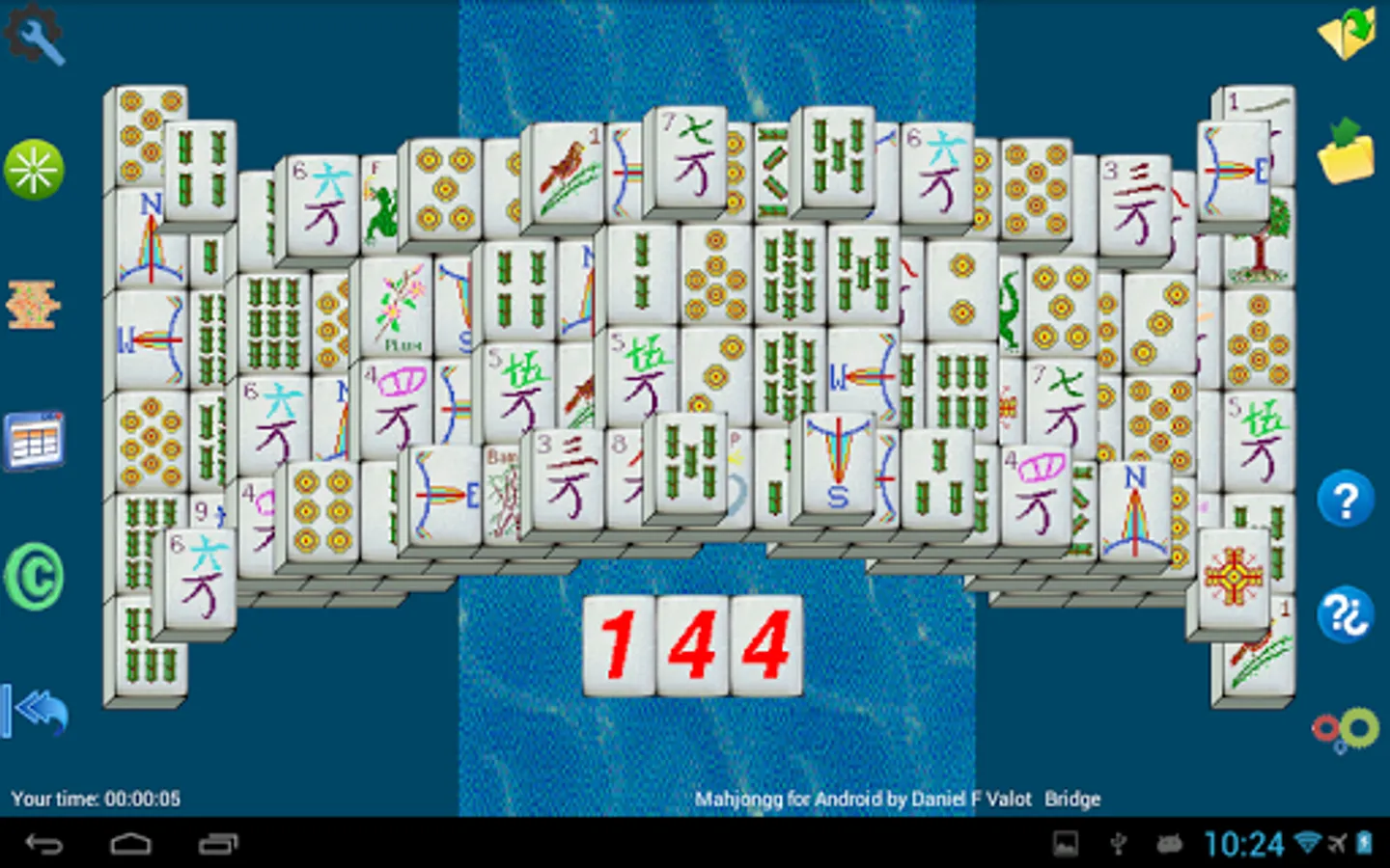 Mahjong solitaire is a solitaire matching game that uses a set of mahjong tiles rather than cards. The 144 tiles are arranged in a special four-layer pattern with their faces upwards. A tile is said to be open or exposed if it can be moved either left or right without disturbing other tiles. The goal is to match open pairs of identical tiles and remove them from the board, exposing the tiles under them for play. The game is finished when all pairs of tiles have been removed from the board or when there are no exposed pairs remaining.