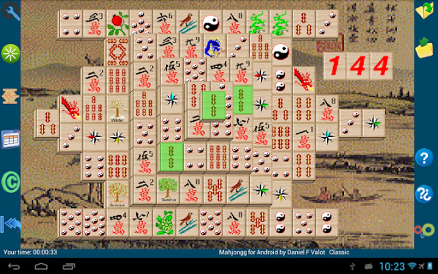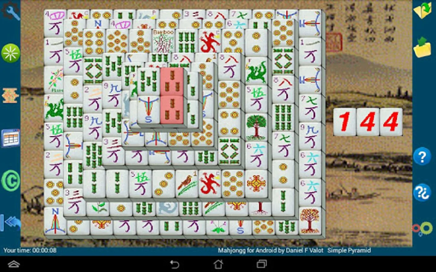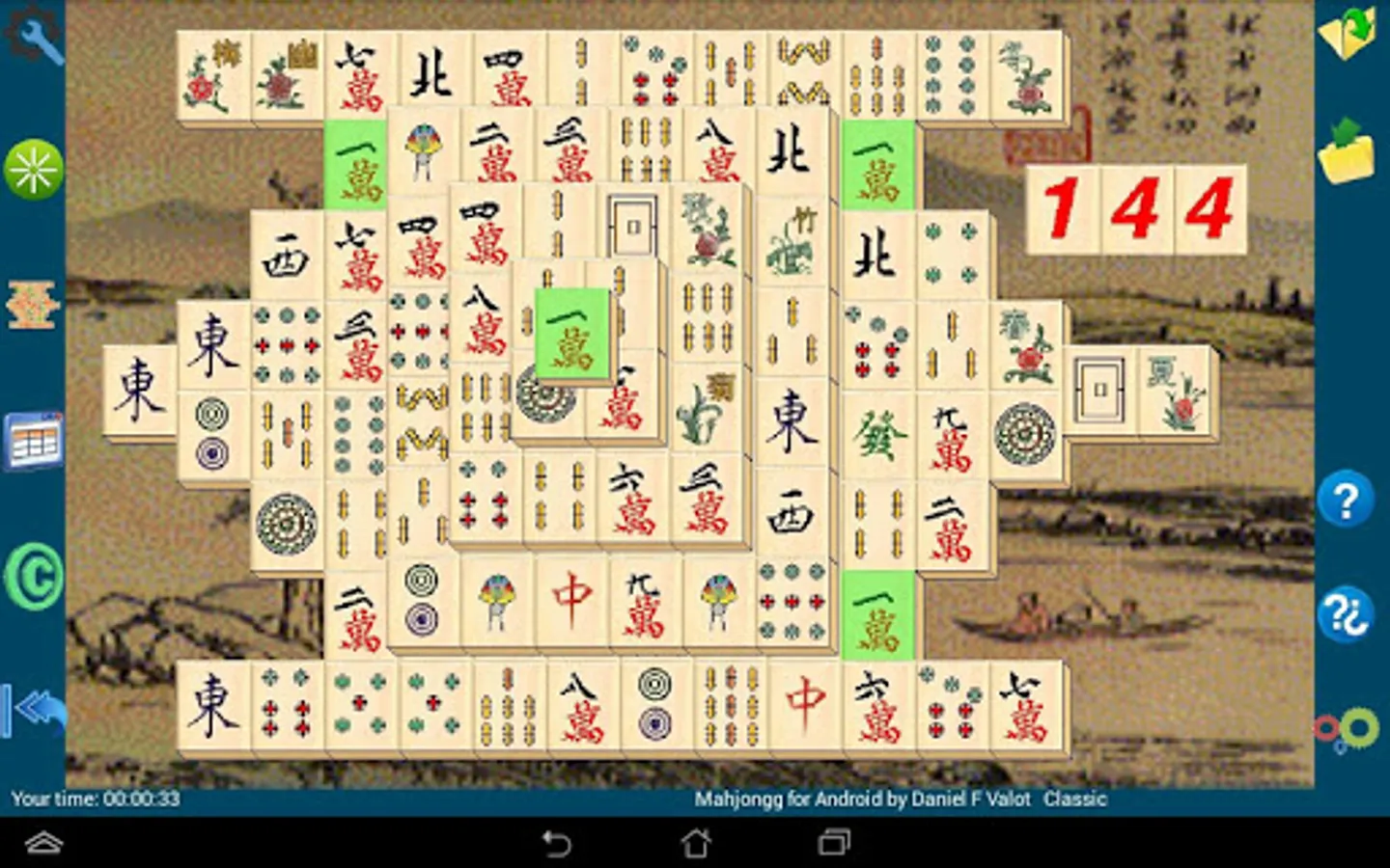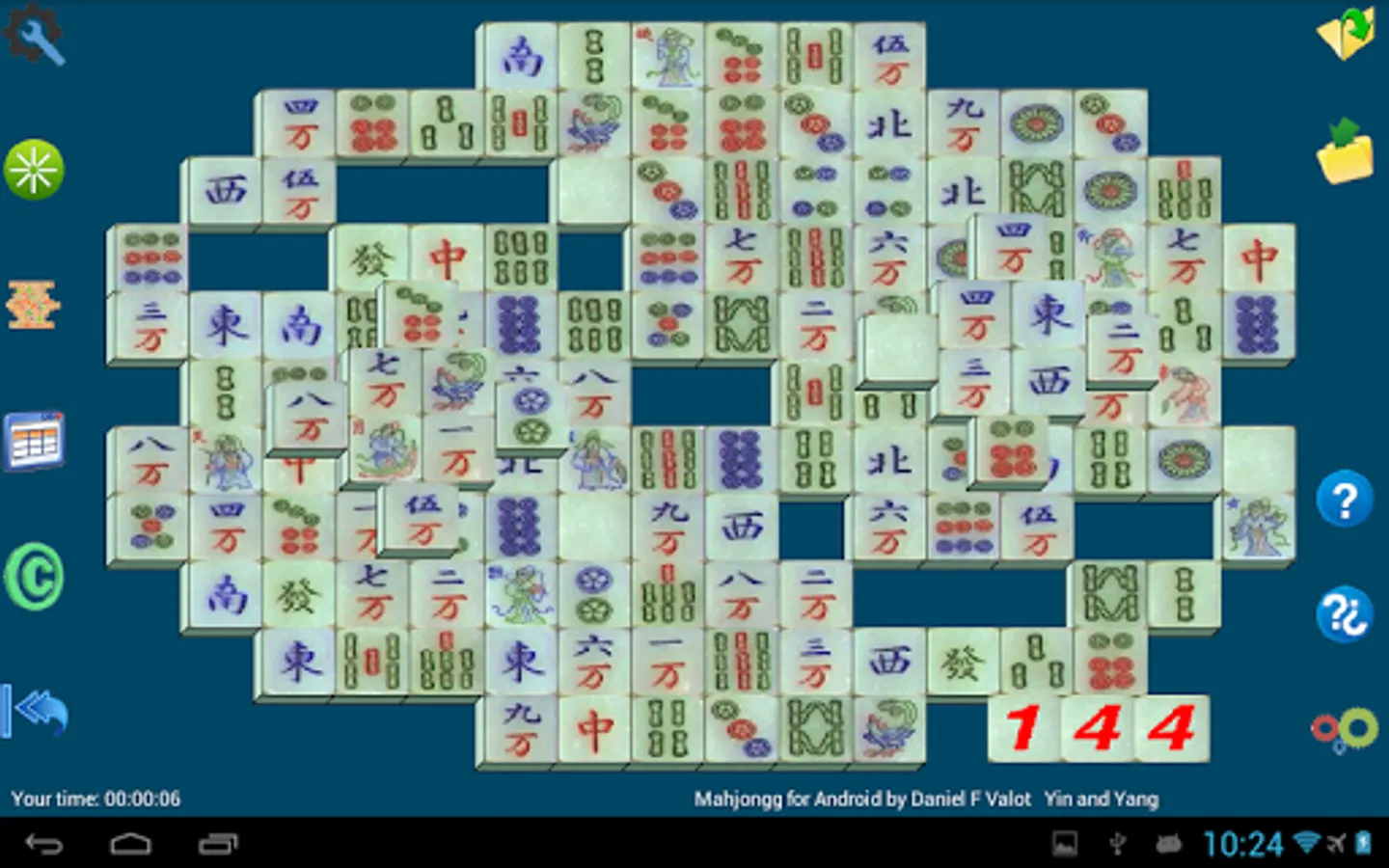 Mahjong solitaire is a solitaire matching game that uses a set of mahjong tiles rather than cards. The 144 tiles are arranged in a special four-layer pattern with their faces upwards. A tile is said to be open or exposed if it can be moved either left or right without disturbing other tiles. The goal is to match open pairs of identical tiles and remove them from the board, exposing the tiles under them for play. The game is finished when all pairs of tiles have been removed from the board or when there are no exposed pairs remaining.