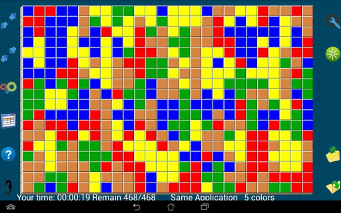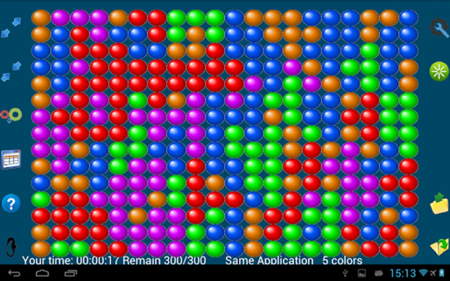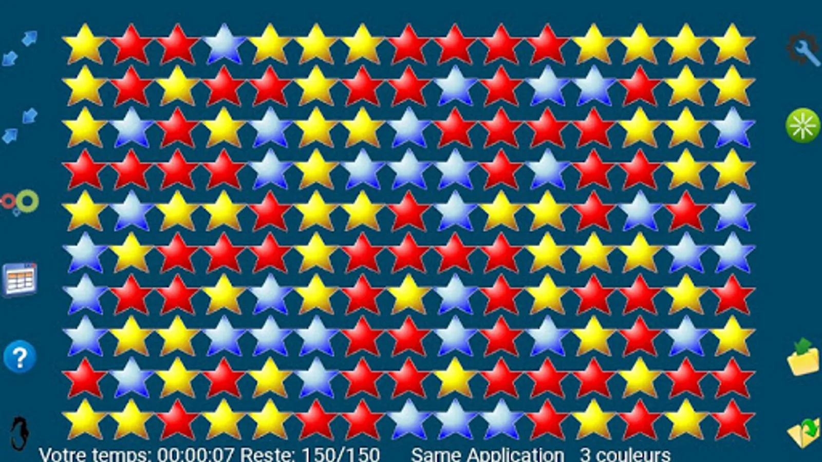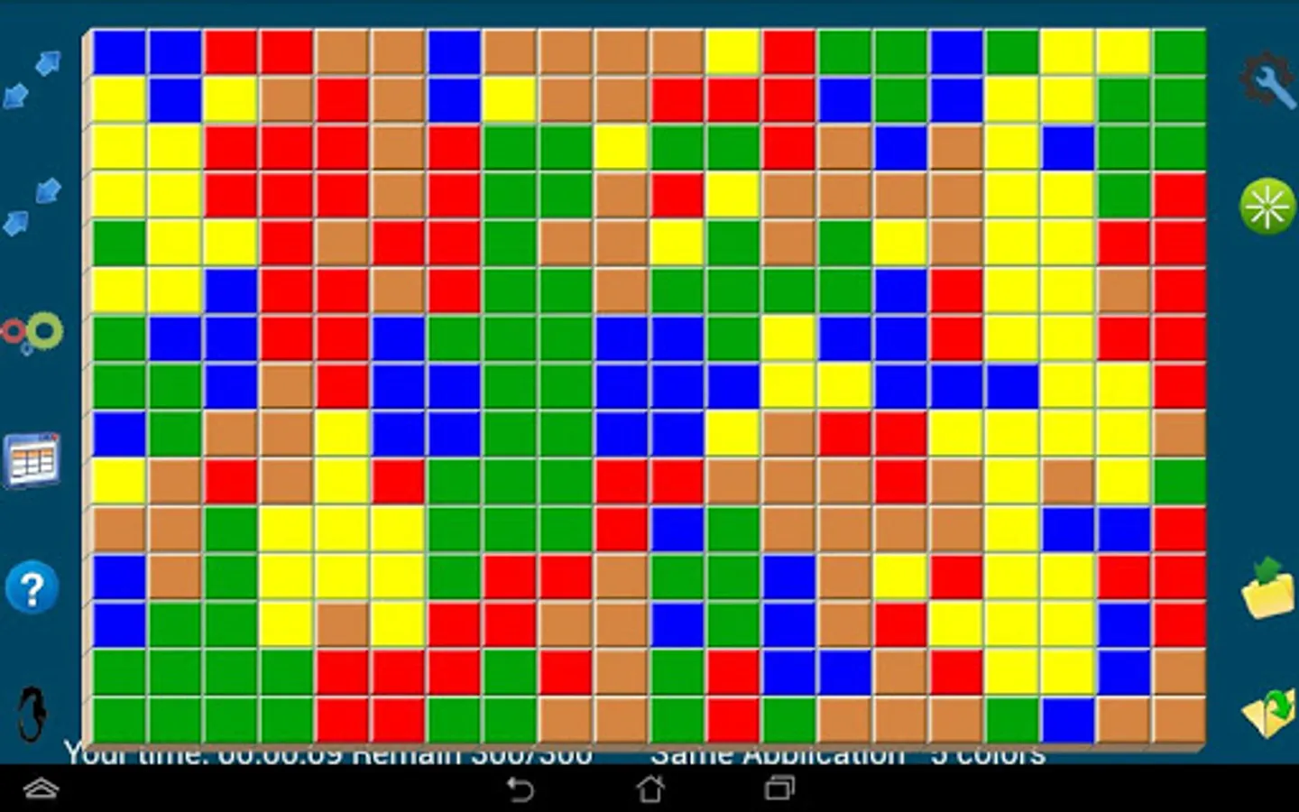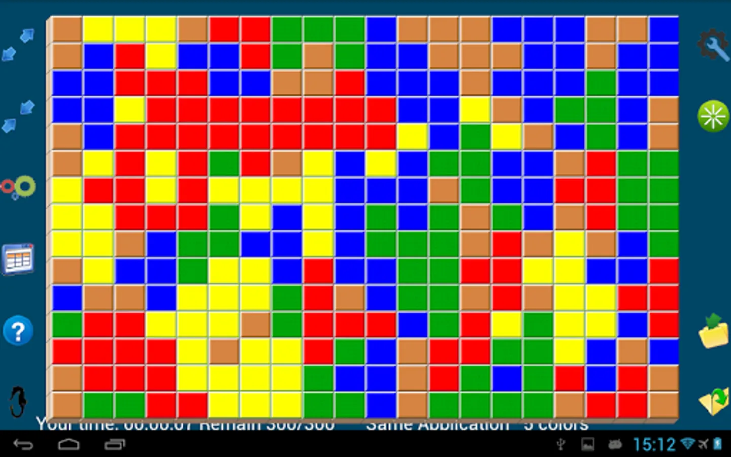 The "Same Game" is played on a rectangular field, typically initially filled with four or five kinds of blocks placed at random. By selecting a group of adjoining blocks of the same color, a player may remove them from the screen. Blocks that are no longer supported will fall down, and a column without any blocks will be trimmed away by other columns always sliding to one side . The goal of the game is to remove as many blocks from the playing field as possible. Groups of more than two blocks add to the score. The faster the game is played, the higher is the score.
