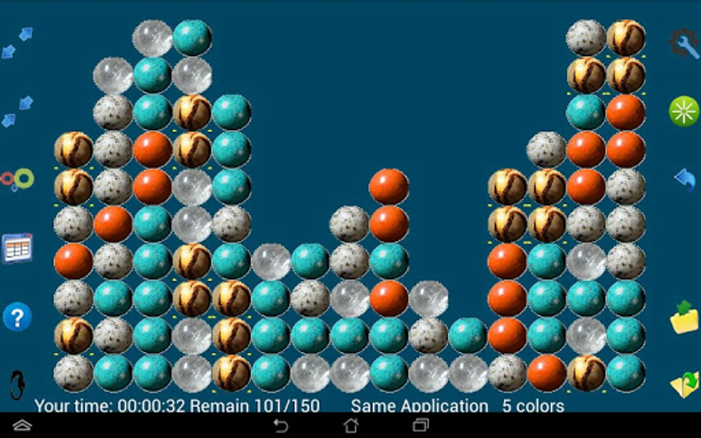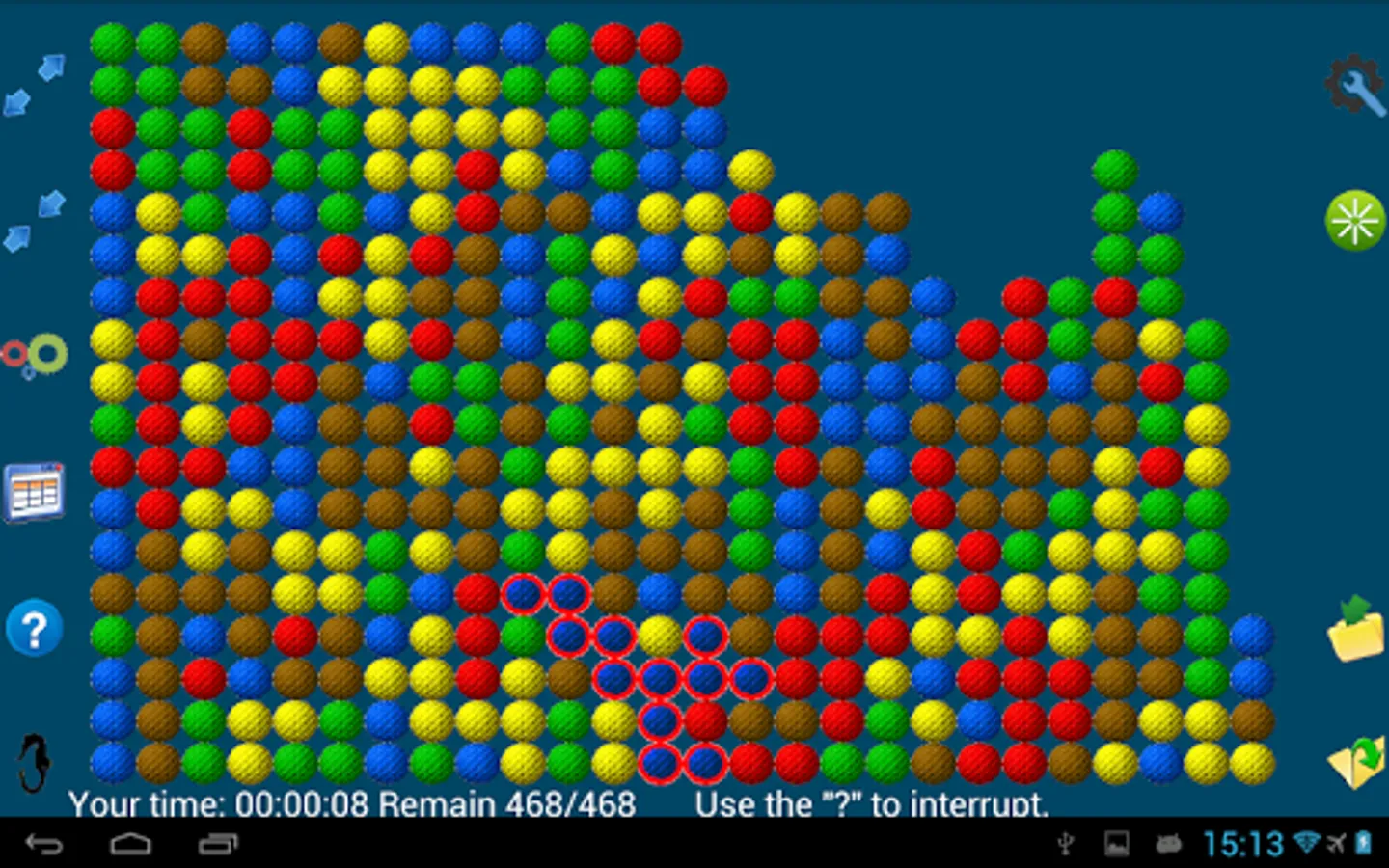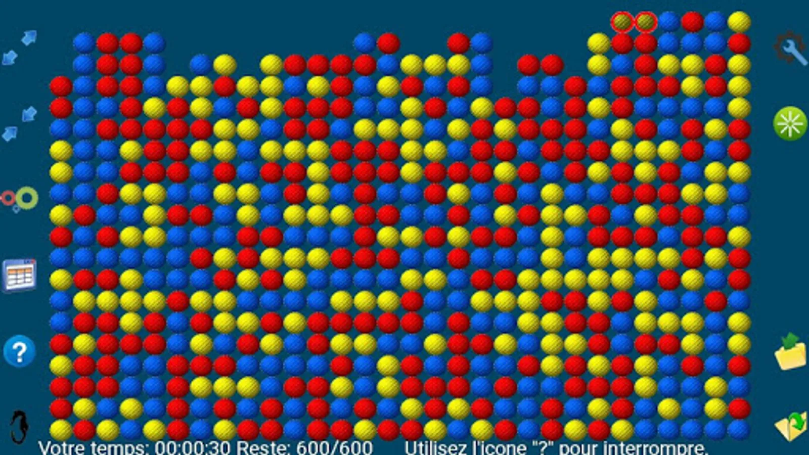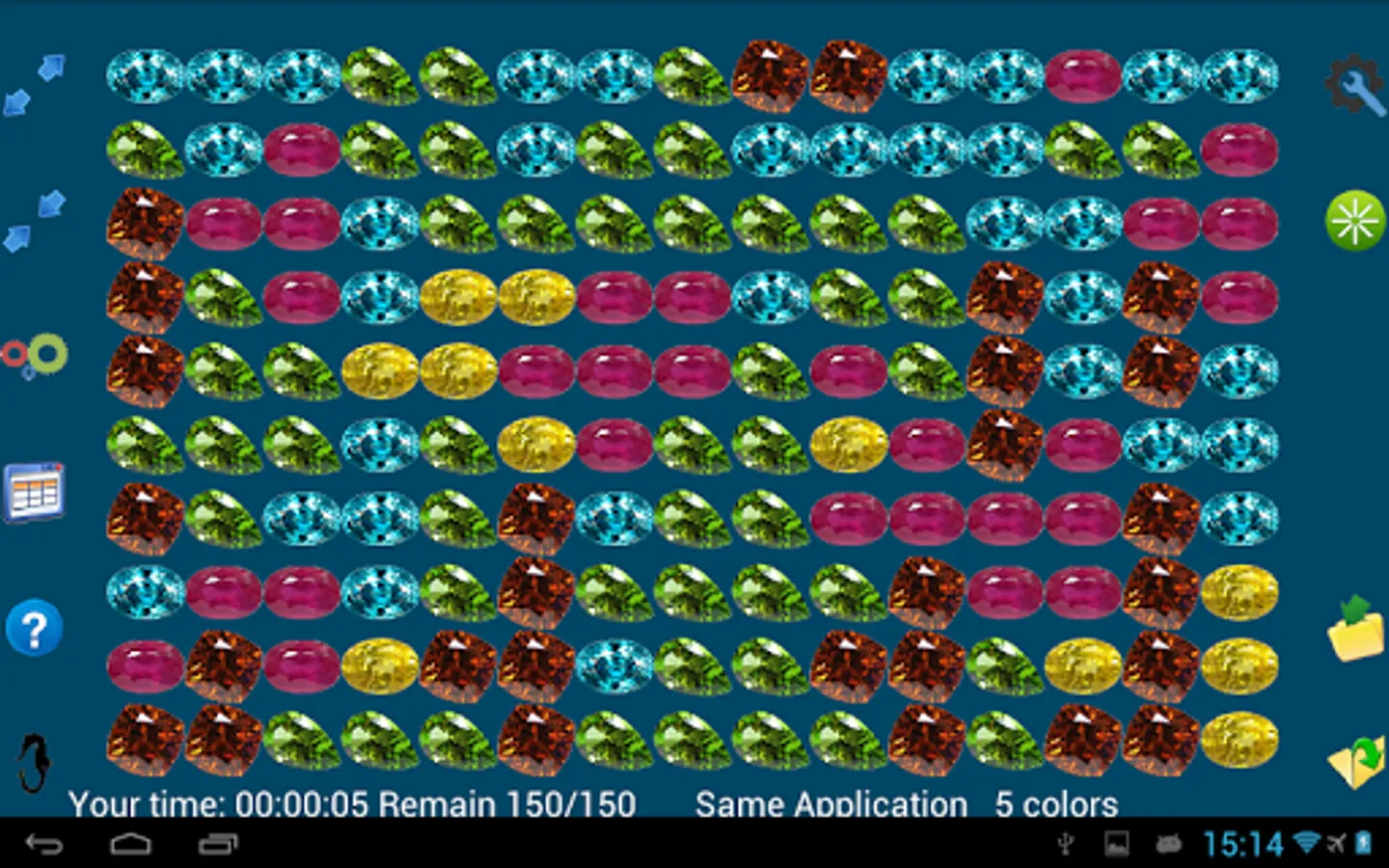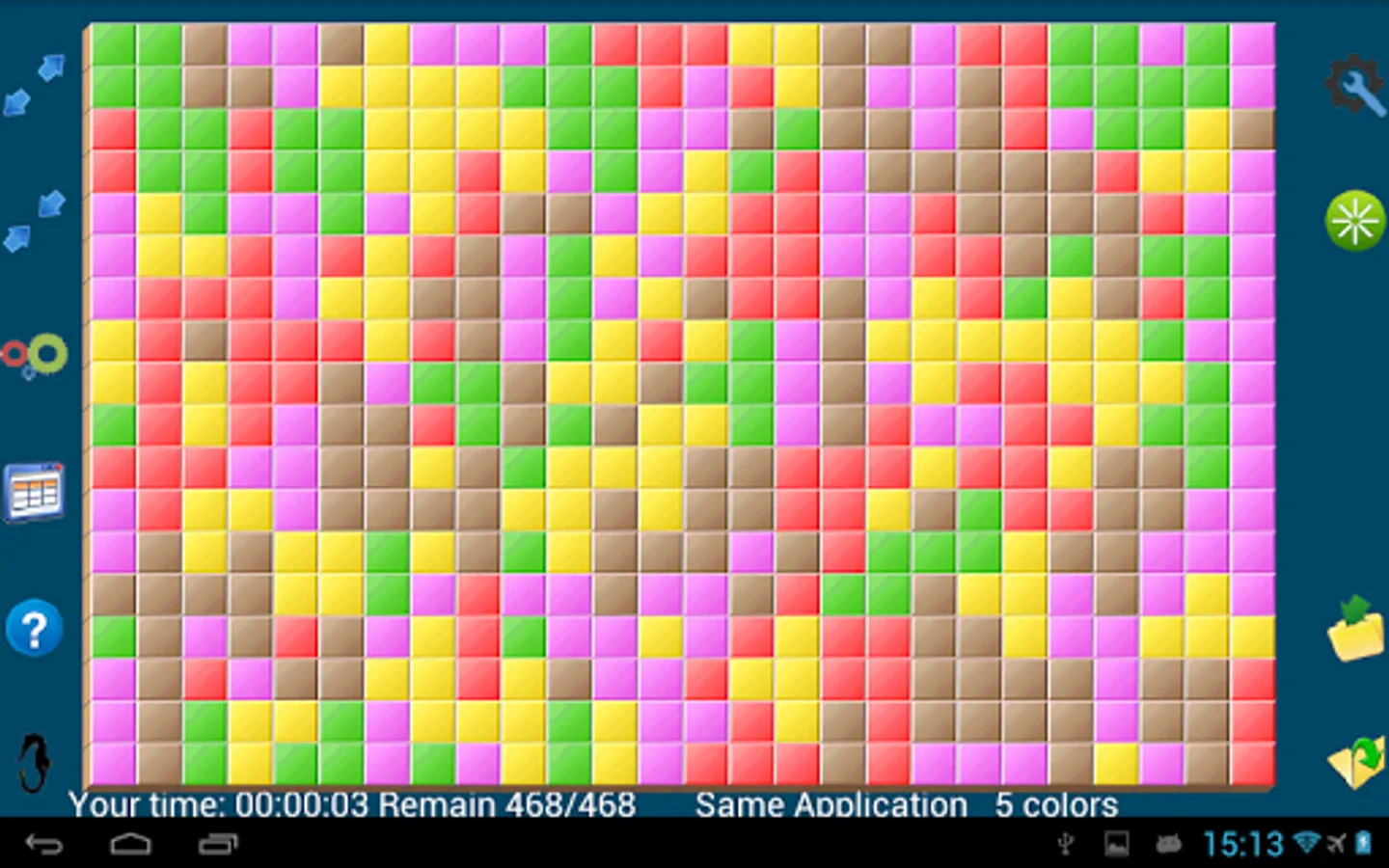 The "Same Game" is played on a rectangular field, typically initially filled with four or five kinds of blocks placed at random. By selecting a group of adjoining blocks of the same color, a player may remove them from the screen. Blocks that are no longer supported will fall down, and a column without any blocks will be trimmed away by other columns always sliding to one side . The goal of the game is to remove as many blocks from the playing field as possible. Groups of more than two blocks add to the score. The faster the game is played, the higher is the score.