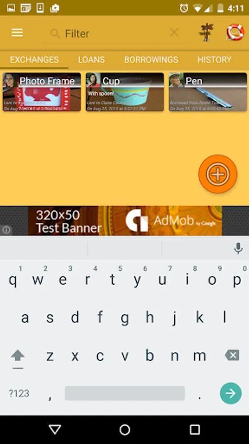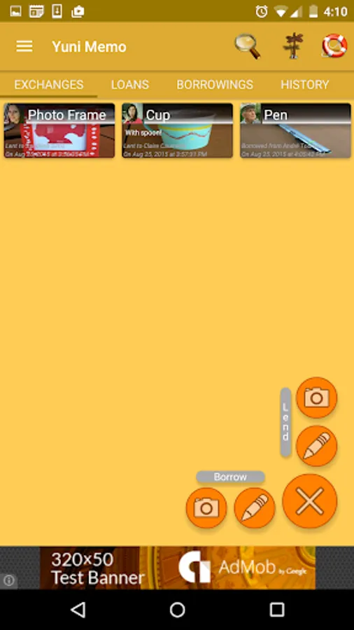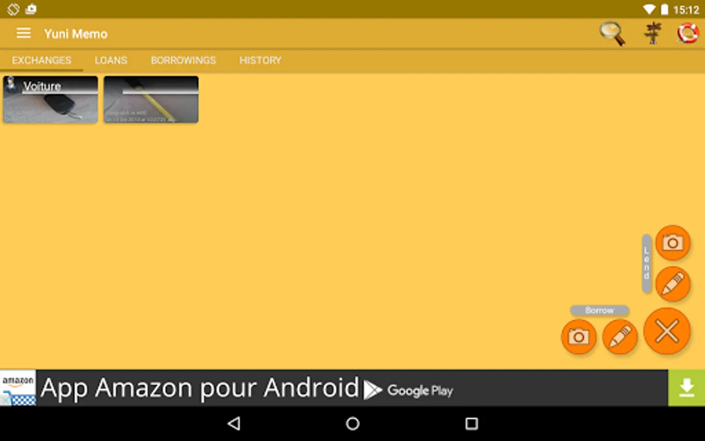 A simple & intuitive user interface allows you to take a picture of what you lend / loan or borrow.