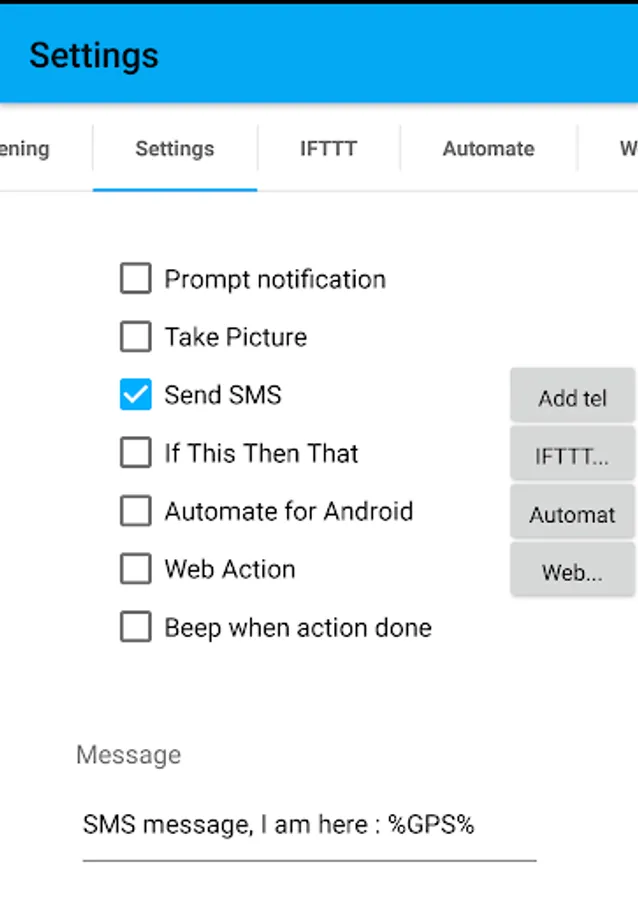Use any notification as "magic button" to take pictures or selfies, to send alarms, short messages and location to any of your contacts.