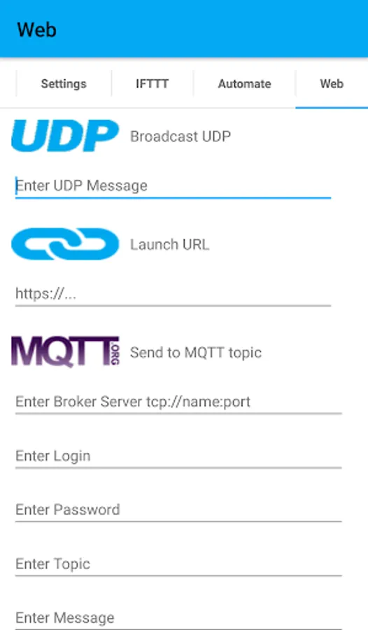 Dash Automation allows you to trigger "web actions" : https links and MQTT integration. Use this for home automation