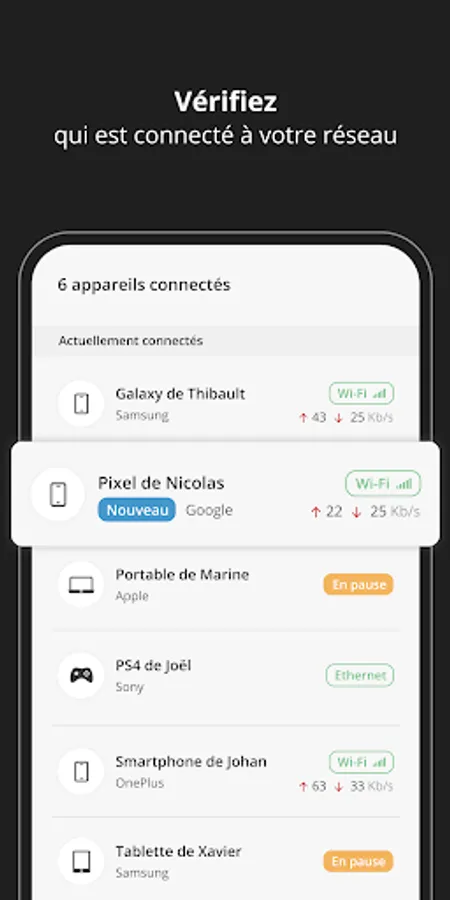 Make sure there are no intruders on your network by inspecting connected devices. You also know who is slowing you down thanks to the speeds consumed by the connected devices.