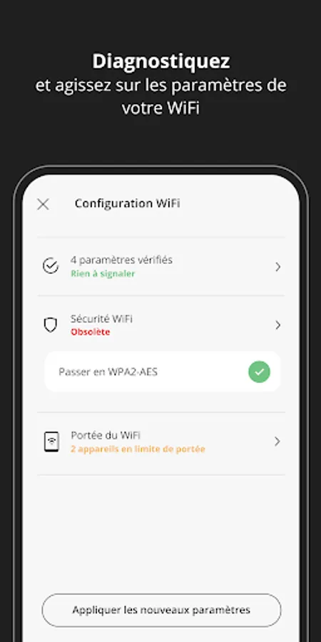 Launch a diagnosis of your WiFi configuration and correct it in 1 click if necessary.
