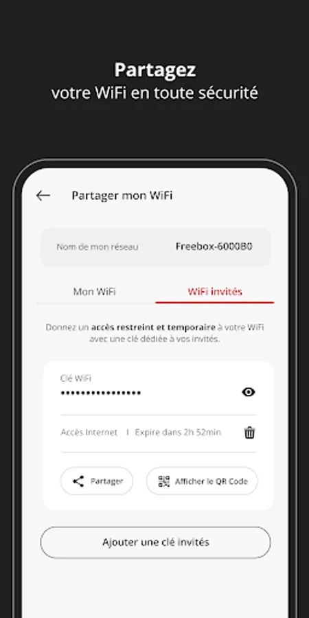 Guests at home? They connect to your WiFi in seconds using the QR code, without having to know your WiFi key.