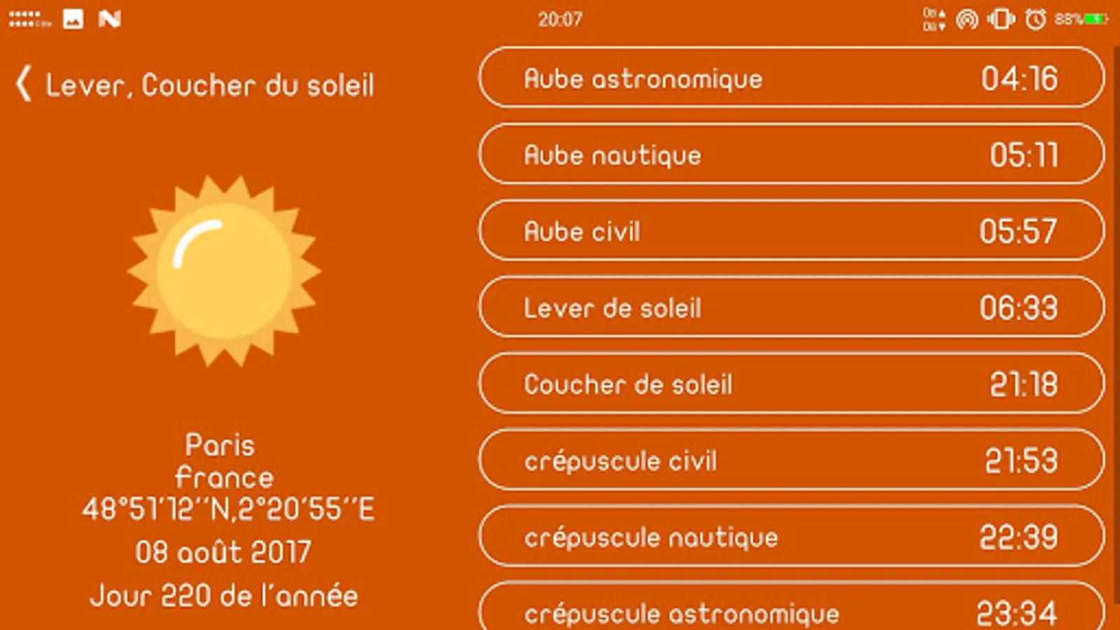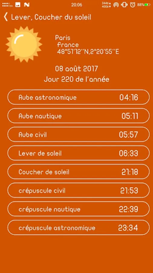 Informations about sun and moon activity
