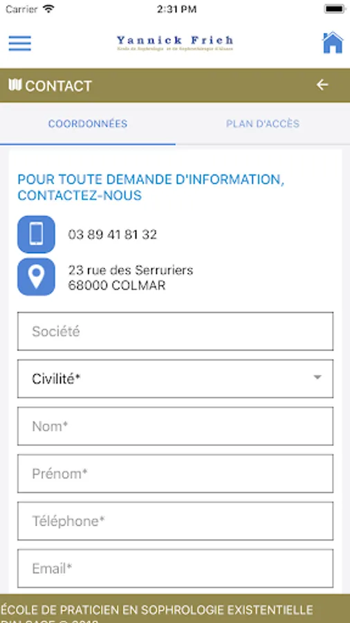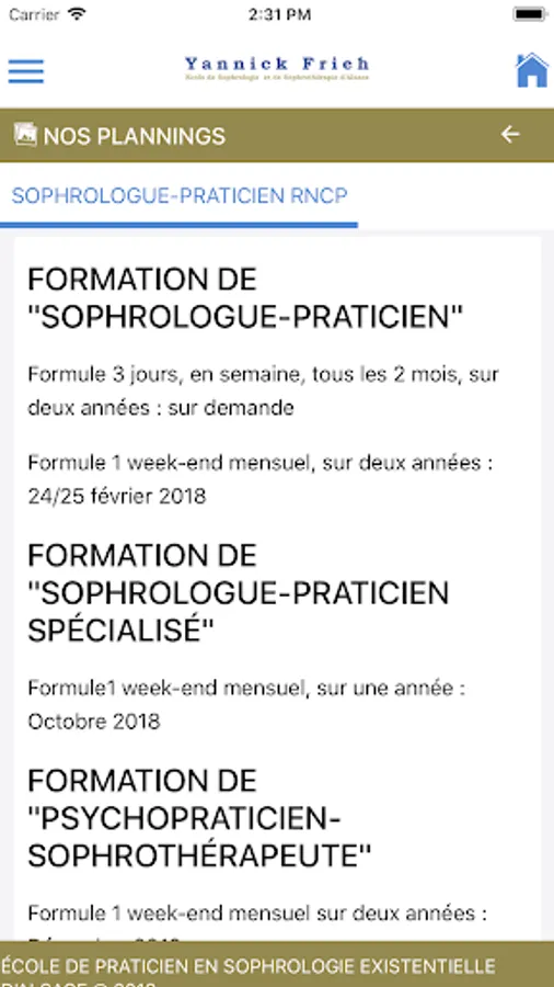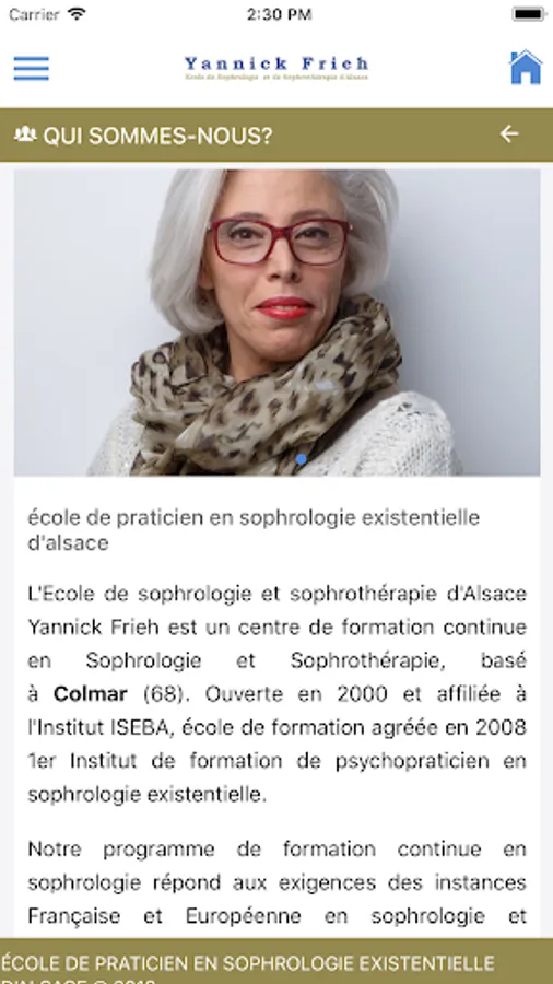 The School of relaxation therapy and sophrothérapie Alsace Yannick Frieh is a continuing education center and Sophrologie Sophrothérapie, based in Colmar (68). Opened in 2000 and affiliated with the ISEBA Institute training school licensed clinical psychologist in 2008 1st Training Institute in existential relaxation therapy.