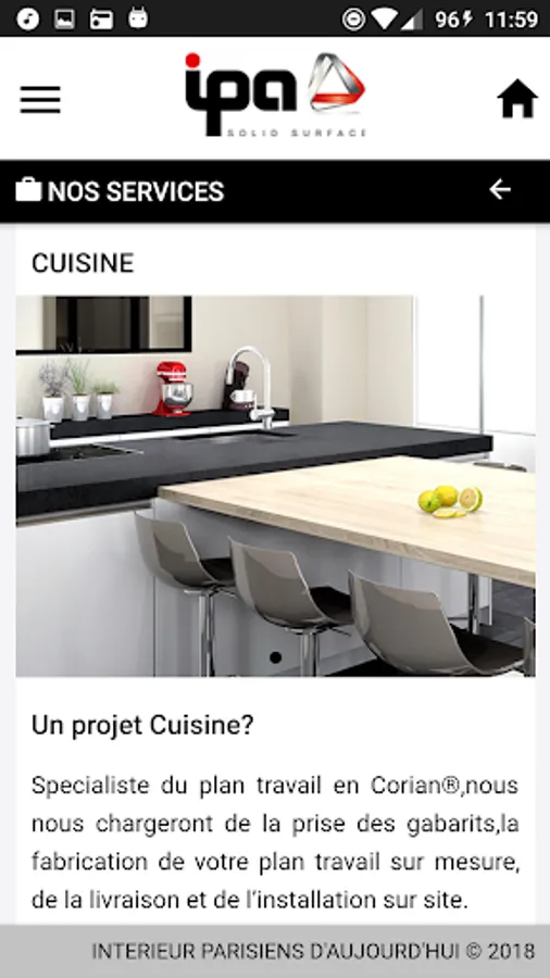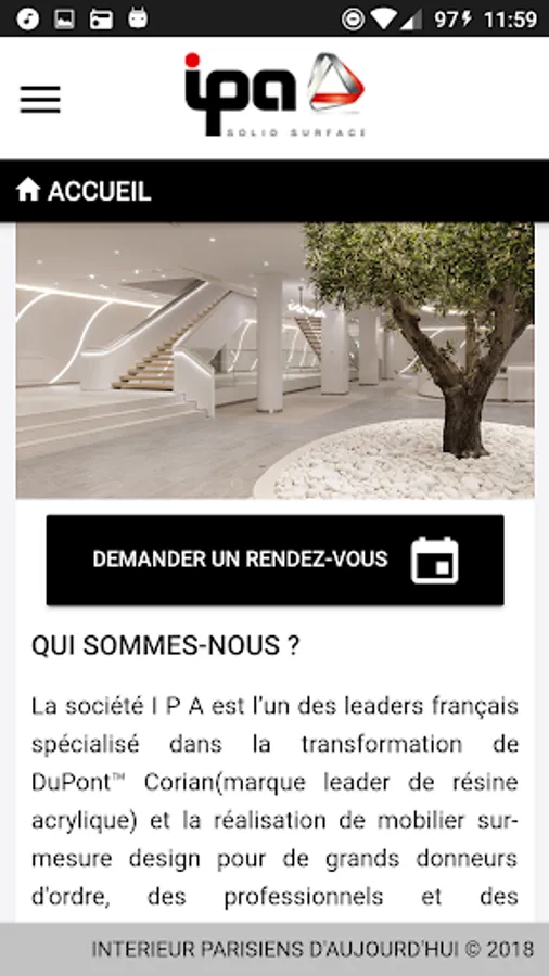 The company I P A is one of the French leaders specialized in the transformation of DuPont ™ Corian (leader brand of acrylic resin) and the realization of tailor-made furniture design for large customers, professionals and individuals.
