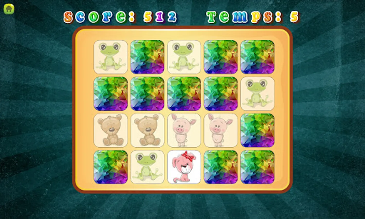 A simple game to take in hand at any age. Find the pairs of animals to earn points. If you make a mistake, start over.