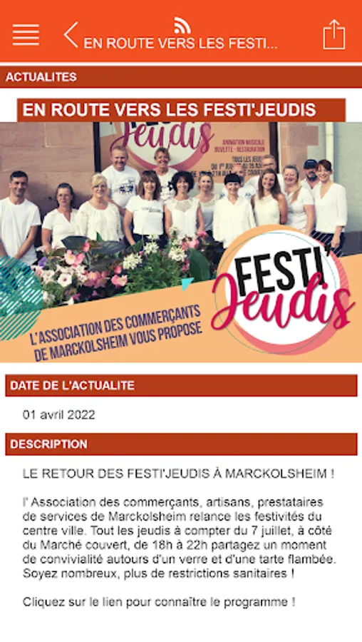 It also allows you to know all the information on all trips (on foot, by car, by public transport, etc.). In addition, it offers information on all the good plans in progress at all the merchants. Finally, it informs about all the activities and news of the city. The bearer of the "Au Cœur du Ried" app has a real Swiss army knife in his pocket about the city.
