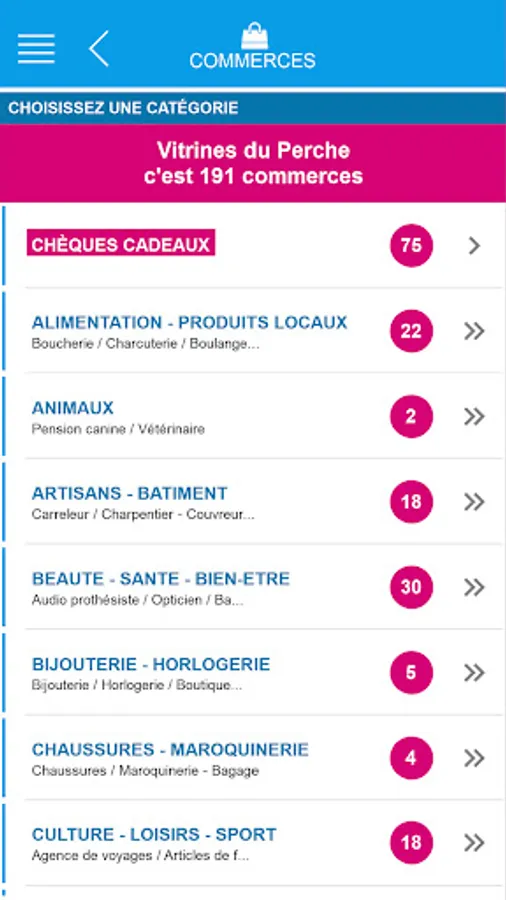 The "Showcases of the Perche" application is the best tool to search in 1 click, the signs, the brands or the products available in the shops of the city.