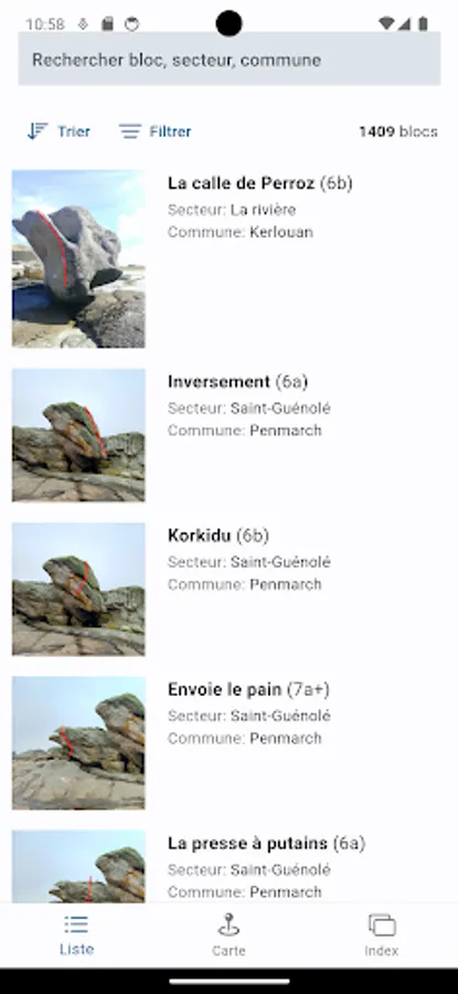 Breizh Blok is an application dedicated to climbers. It lists climbing blocks in Brittany.