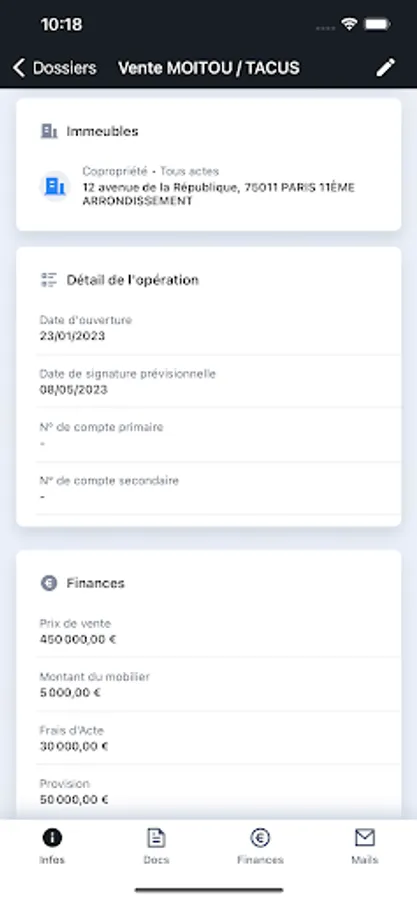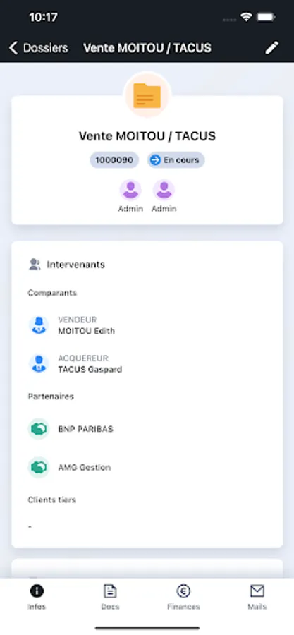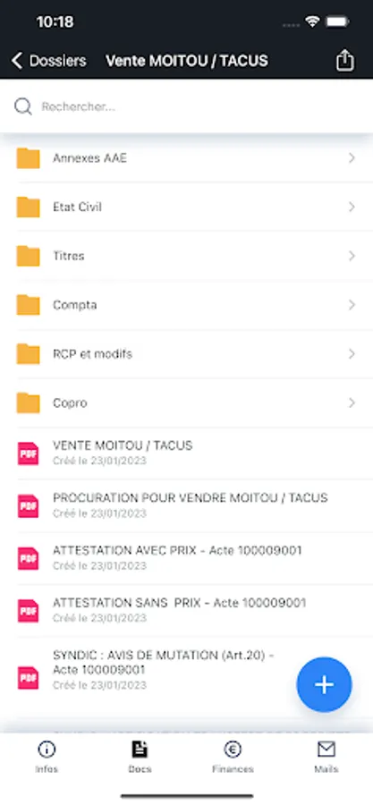 Consult the deeds and documents present in a file, attached to a customer file or to a partner file.