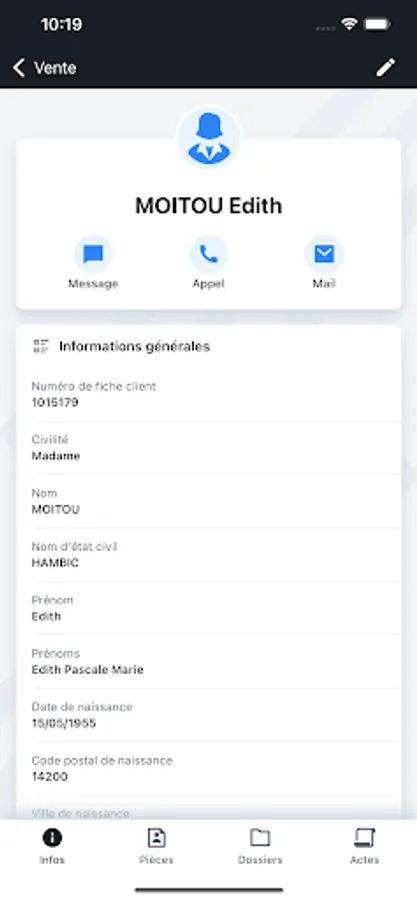 Contact a customer or partner directly from their file, by phone, message or e-mail, without having to enter their contact details.