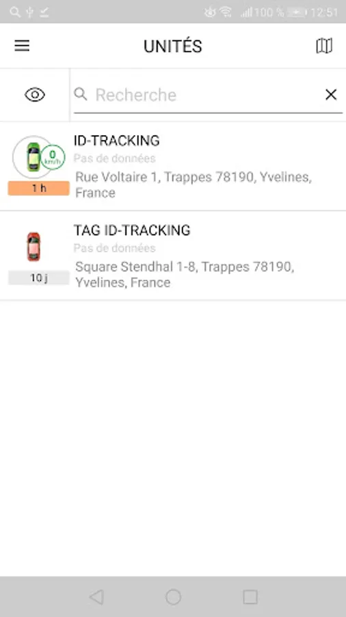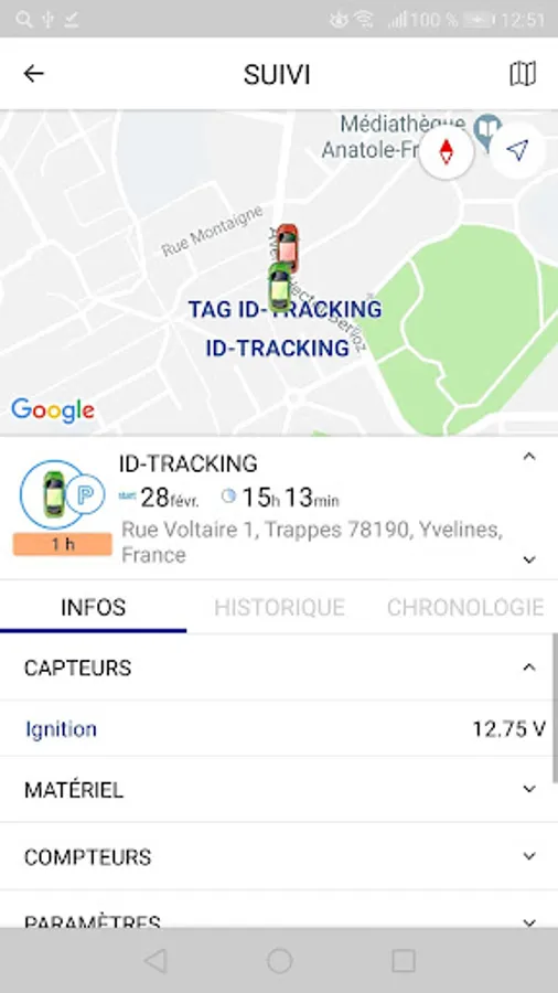 This mobile application allows users to locate their vehicles in real time and to access the main functions of the system when they are outside the office.