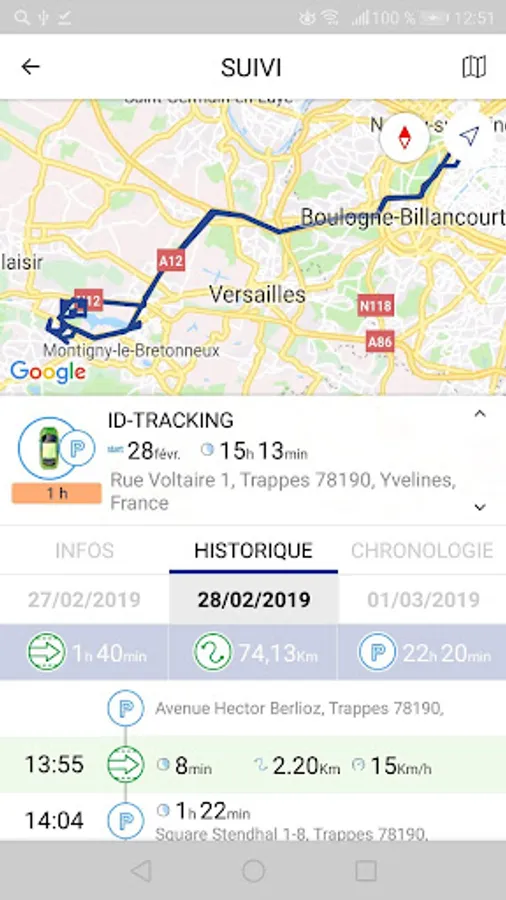 Routes: find the details of the journeys made: map, distance, driving time, average speed, consumption, ...