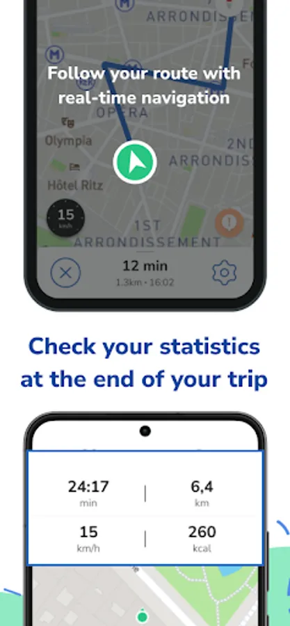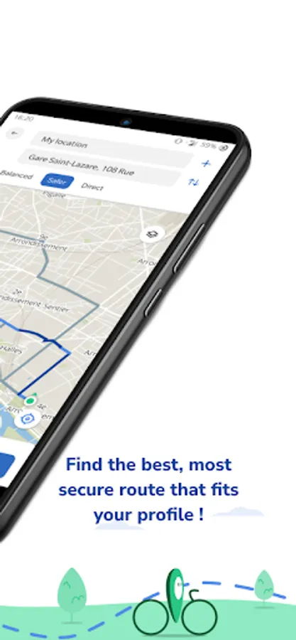 - Customized routes based on your bike type (standard, electric, shared, etc.) and preferred route type (fastest or safest).