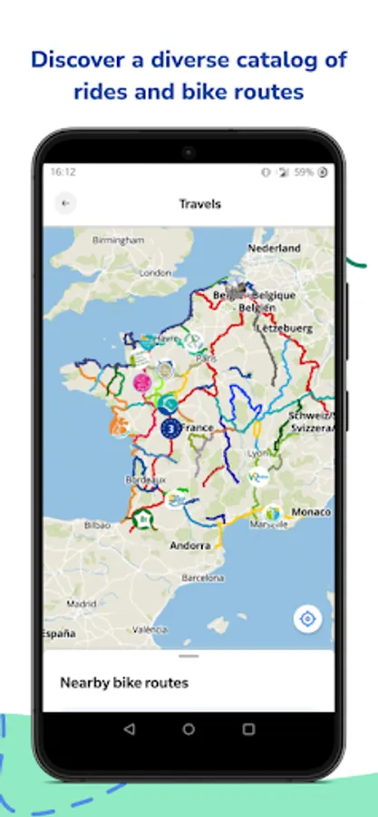 The app also features bike routes such as La Vélodyssée, Via Rhôna, La Loire à Vélo, La Scandibérique, La Flow Vélo, Le Canal des deux Mers à Vélo, La Vélo Francette, La Véloscénie, L'Avenue Verte London-Paris, and many more. It also offers numerous rides to explore the heritage and its riches.