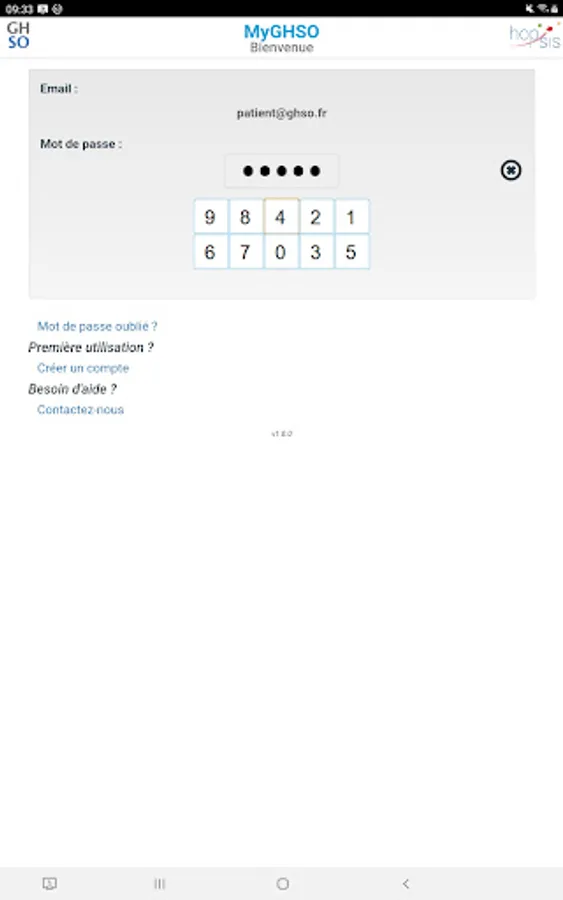 The connection to myGHSO mobile uses the same identifier (e-mail) and the same password as the connection to the myGHSO website.