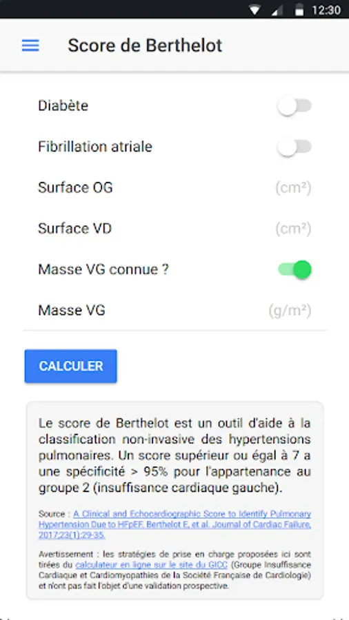 Scores proposed in CardioCALC come from scientific publications in medical journals and international recommendations issued by internationally recognized cardiology learned societies.