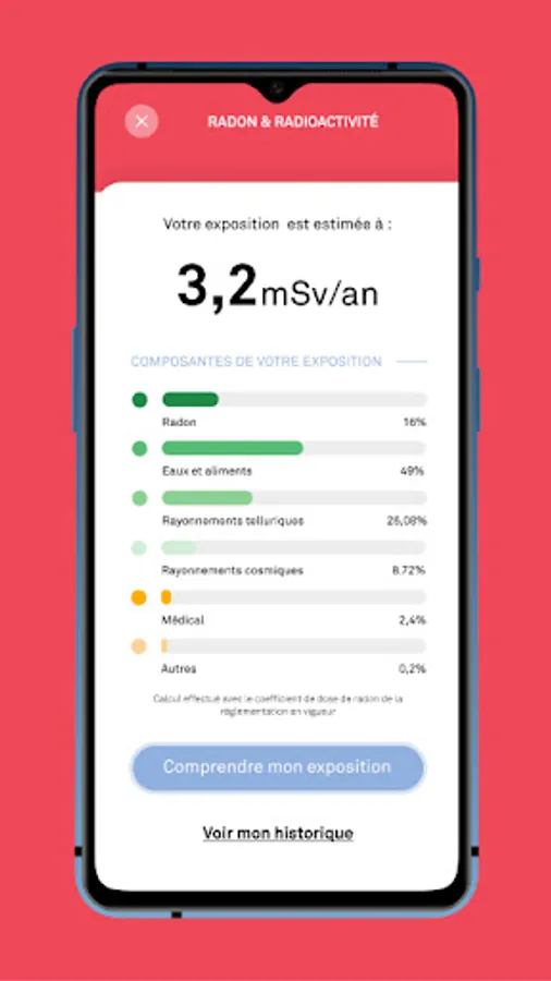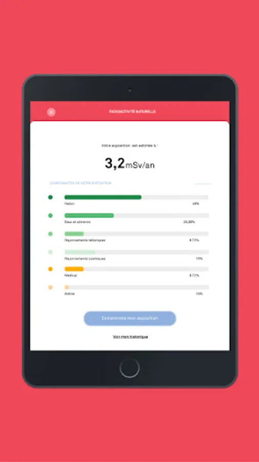 From a very simple questionnaire, you obtain an estimate of your exposure to ionizing radiation and access content that allows you to better understand the question.