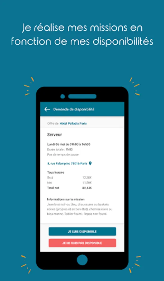 3. Access very detailed information on the mission: total net amount to be won, grooming, access to the establishment, tools to provide, advice, etc.