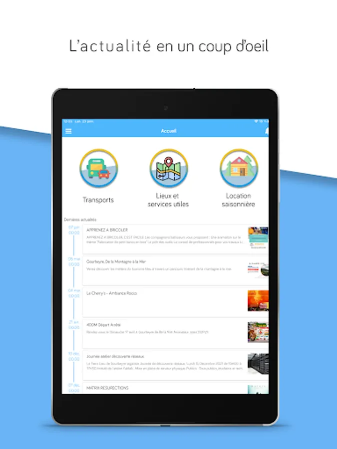 With its many features, you will be able to access all the information about your city, find out about events and the latest news, find a place or an address and much more.