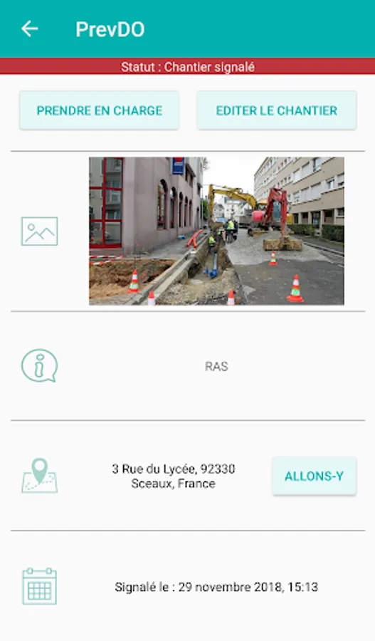 The idea is to make actor and contributor all GrDF employees by letting all sites during their business trips see private. With a simple click detection, geo positioning of the site will be on a database. This information would be made available to personnel authorized to carry out site visits.