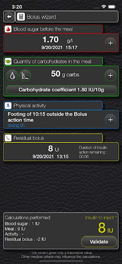 Insulineo offers you an assistant to calculate the ideal dose of insulin to inject before meals and takes into account residual boluses and upcoming physical activities. This assistant uses the principle of functional insulin therapy.