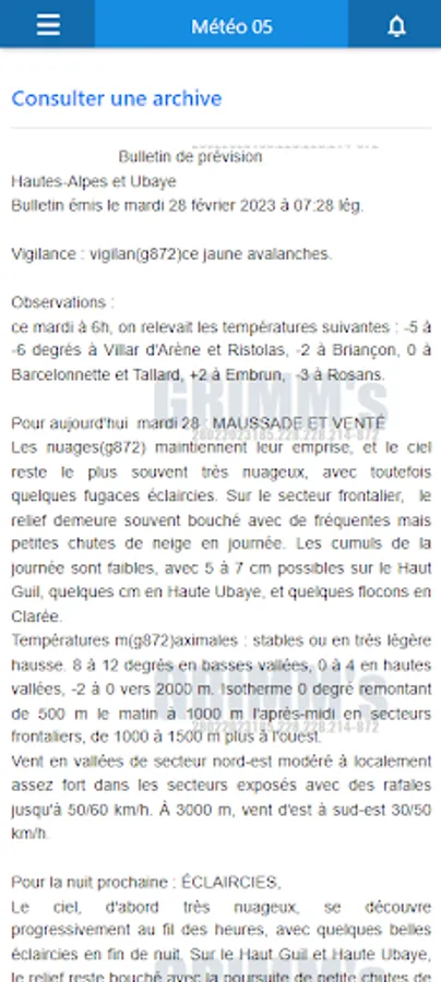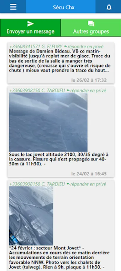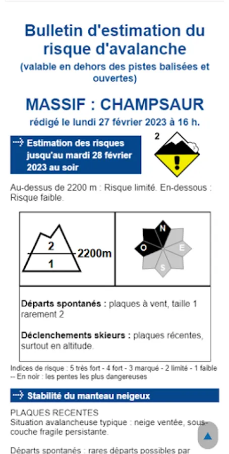 - Paying Météo-France bulletins from professional mountain departments published 3 times a day.