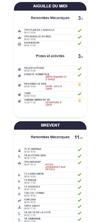 and many other sources of information to help you prepare for your day in the mountains like professionals. (avalanche data, icefall data, flowcapt, emergency radio relay, chamoniarde bulletin, skip reservation at the aiguille du midi and skyway...)