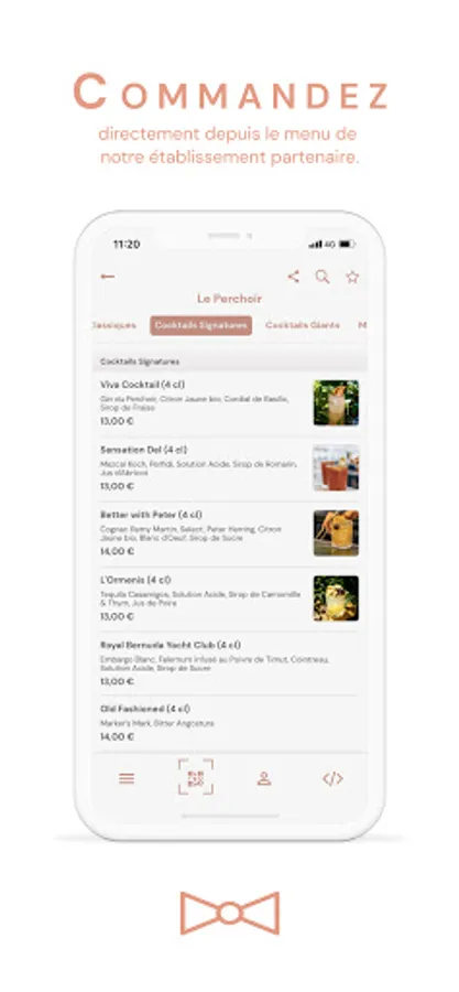 1/ Scan a Grinks QR code to access to the menu of one of our partner venues.